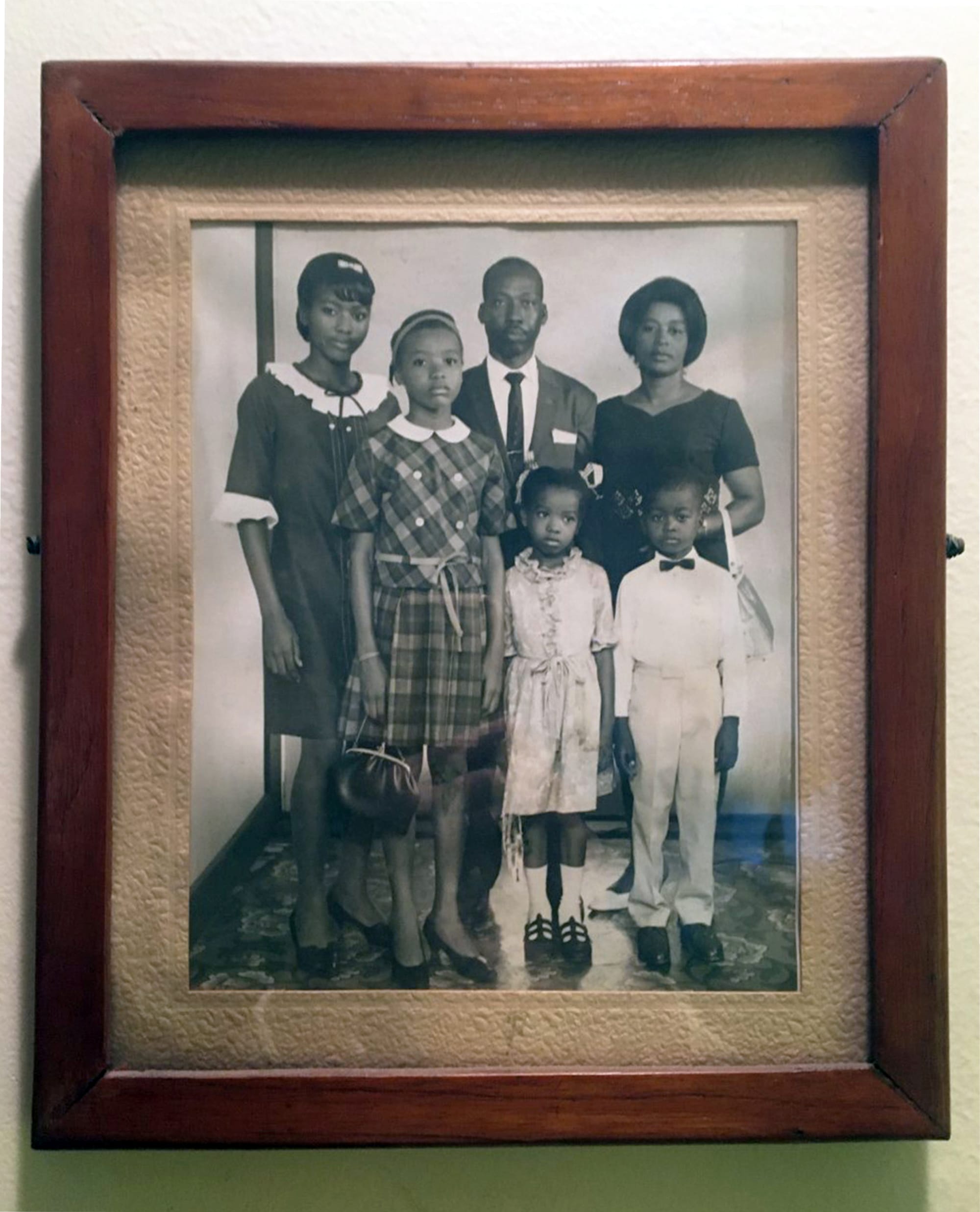 Arthur Simms (Staten Island, New York): This large oil painting on paper by my wife, Lucy Fradkin, is titled “Kingston, Jamaica 1968.” It is a portrait of my family based on a photograph that was taken at that time and place. The painting and the photograph are on opposite walls in my living room, where I now spend a great deal of time. The portraits are of my mom, dad, three older sisters and me, the little guy with the red bowtie. Lucy spent a year working on the painting, which was completed in 2000. Consequently, I have lived with this work for more than two decades.