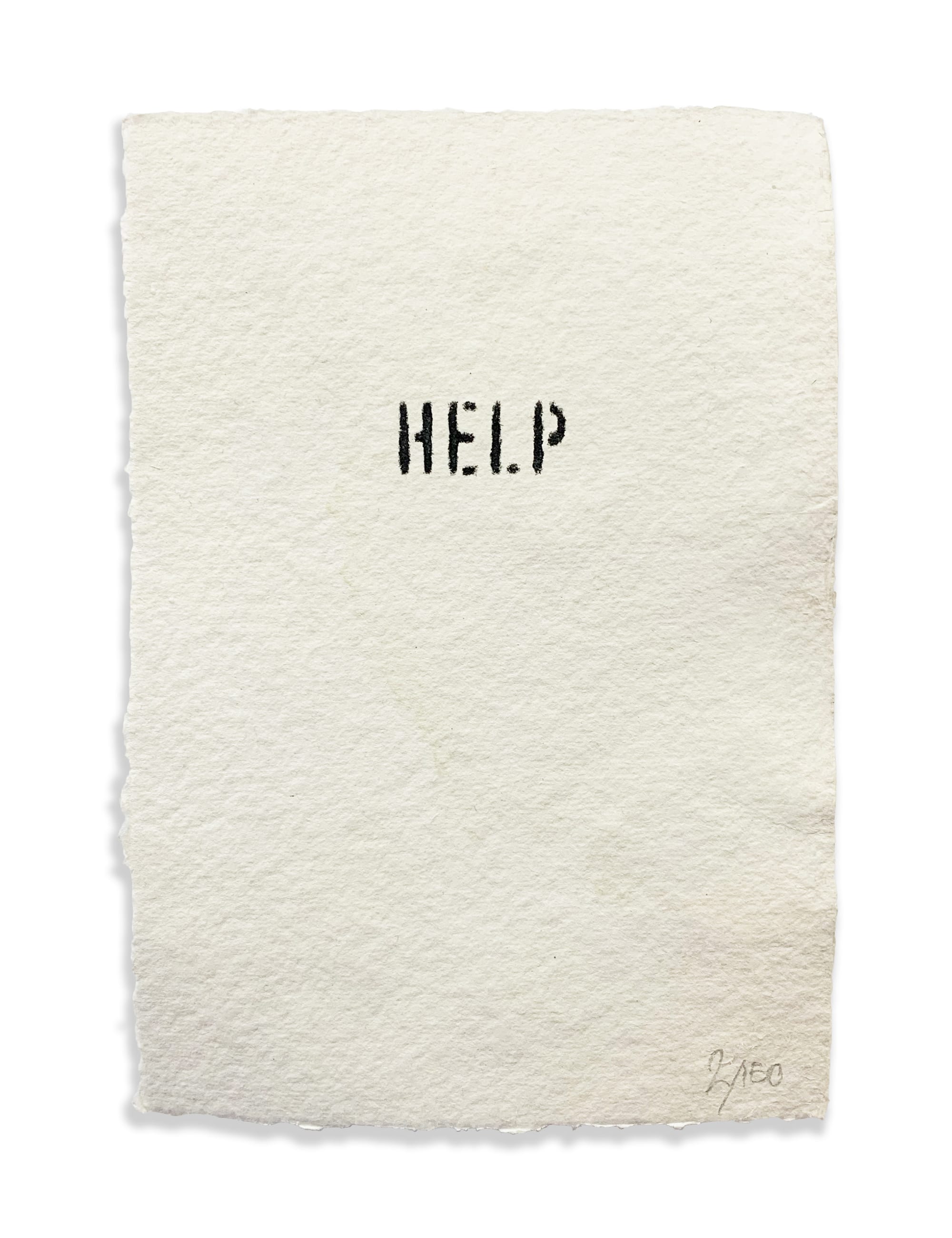 Tom Wilmott (London, England): Charlie Warde’s “HELP,” a small, editioned print comprising the titular exclamation stenciled onto robust watercolor paper, hangs in the corner of my lounge/study. It was published in 2017 to raise funds for a briefly realized residency in which Warde camped under a thundering flyover in West London and made work with the rubbish and building detritus discarded there. Six days in, he was forced to abandon his project when the nearby Grenfell Tower tragically caught fire.