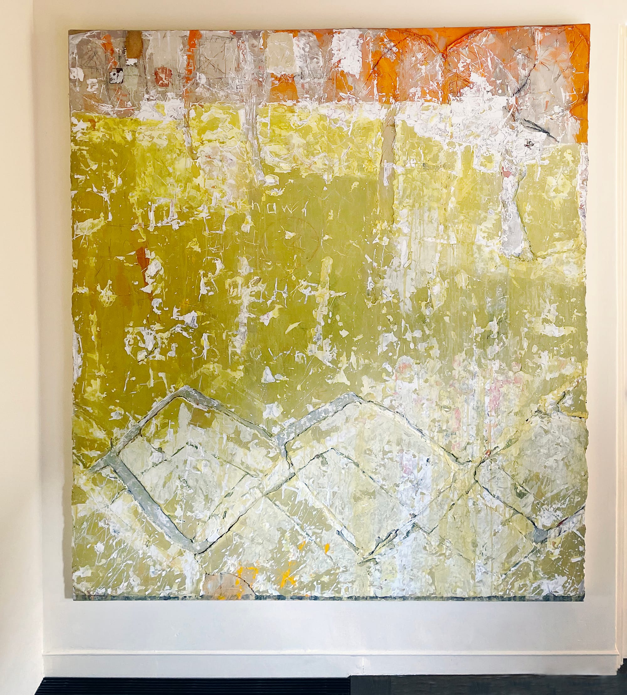 Tabitha Soren (San Francisco, California): I’ve lived with “How About It” by Nicole Charbonnet for my entire married life. It was the first piece of art my husband and I bought together and it is the only large painting we own. Until COVID, it was so familiar to me that despite its scale I barely saw it. During the lockdown, I’ve spent time doing two things I’ve always wanted to do more of: reading and painting. Focusing on words and paint instead of my camera has made me look closely at Charbonnet’s piece. She carves text into the thick layers but it’s pretty illegible. I get to decide what the words mean and, in a sense, finish the painting.