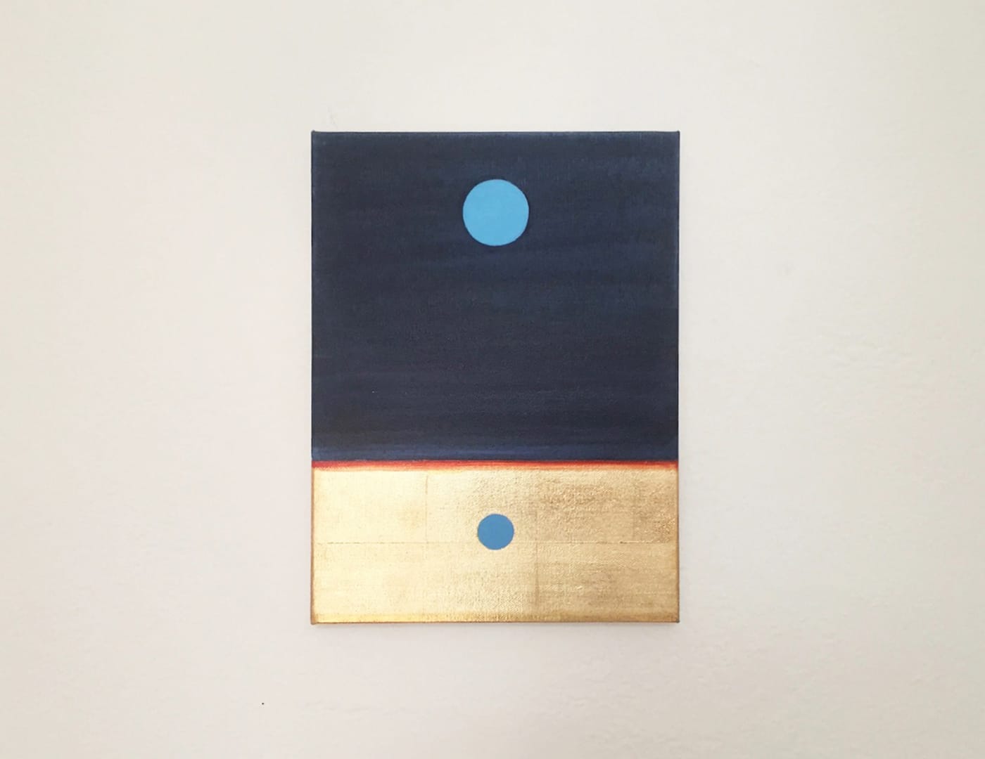 Before moving back to Albuquerque, we lived in rural southwestern New Mexico, where Lisa’s painting spoke directly to the vast, empty desert landscape and clear night sky. Now that we are living in a city again and have been relegated to spending more time inside, I’m finding a connection to an internal landscape. The reflective surface also acts a bit like a mirror and changes throughout the course of the day.