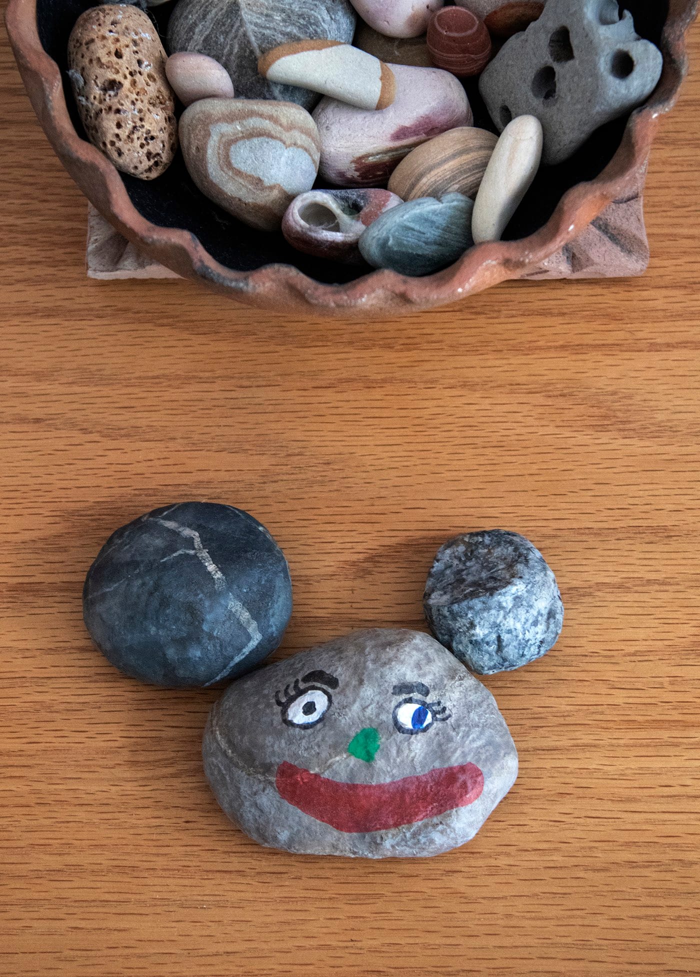 I view its painted smirk as optimism for a post-pandemic realignment of the art world’s overblown financial power structure. With vast art mausoleums now shuttered, we artists increasingly occupy the same virtual space, deepening our exchanges by sharing readings, conversations, and Zoom studio visits. Creative isolation remains essential but, residing inconspicuously alongside our rocks from global travels, this unassuming little work signals engagement with the external world. I enjoy living with art that integrates with life and is not set apart. These days, Morgin’s piece triggers thoughts about the visual surrogate operational in Vija Celmins’s “To Fix the Image in Memory,” which bring on memories of critiques with Vija as a teacher. Recently, Kristen and I co-critiqued our classes via Zoom, and once again no money changed hands.