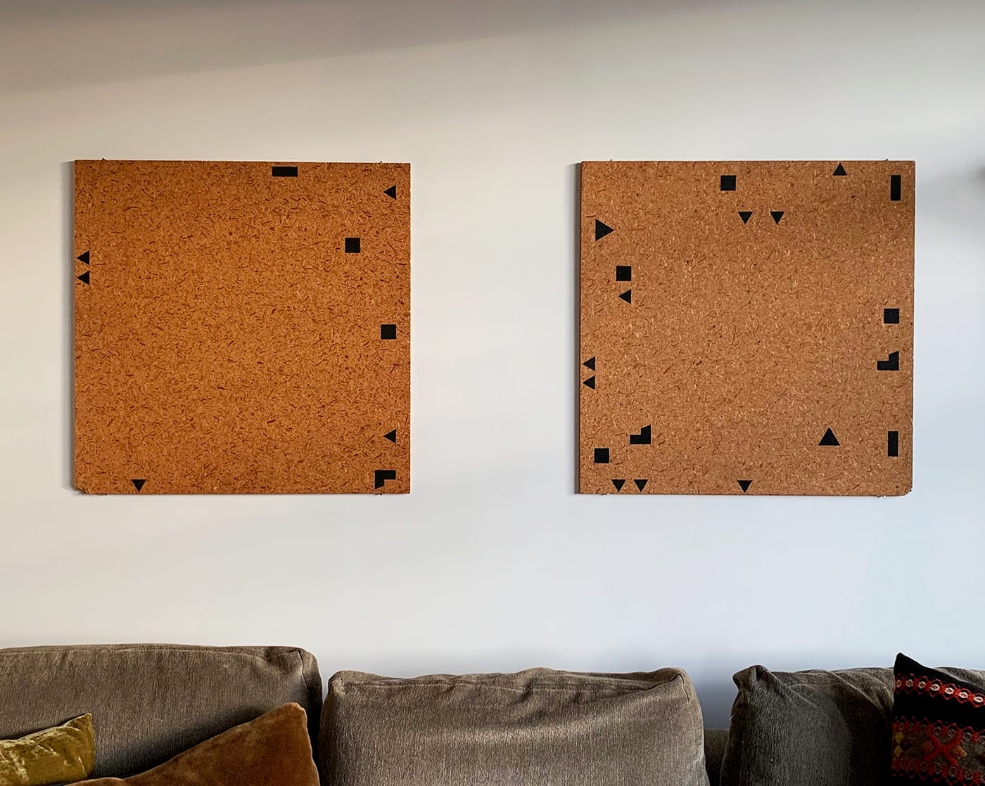 Steel Stillman (New York City): This pair of Haim Steinbach’s “Particle Board Panel with Black Shapes” pieces hangs over the living room couch in my wife’s and my Lower East Side apartment. I’ve had them since they were made in 1977. Haim had been my teacher at Middlebury College, and we’d become friends. My recollection is that I bought one and that he gave me the other. In hindsight these works fit between Haim’s elegant geometric paintings of the early ‘70s and the found-object-based sculpture and installations he’s been making since the end of that decade. I’ve long loved the game-board quality of the “Particle Boards” and the inscrutable patterns the black shapes trace along the panels’ peripheries. Today, in the Covid-19 era, the “Particle Boards” have taken on a new role – and a surprising surrogacy — as the visual backdrop for Jane and me as we sit on the couch having Zoom or FaceTime drinks with our equally quarantined friends.