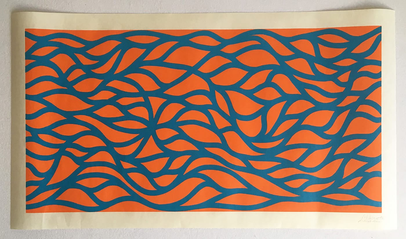 Thinking about the former artwork now fills me with the urgency to preserve it. I recently located and unrolled my Sol LeWitt print, which has been in a tube for 20 years. I have long reserved a spot for it on the wall in my foyer salon. In the fall of 2000, I was a member of the artist team that produced the wall drawings for the Sol LeWitt retrospective exhibition at the Whitney Museum. Sol honored us by including our names on a main exhibition signage wall, and he editioned a suite of prints titled “Loopy Doopy (Blue/Orange)” that he signed and inscribed to us individually. Being a member of that team and working with Sol was extremely important to me and my practice as an artist.