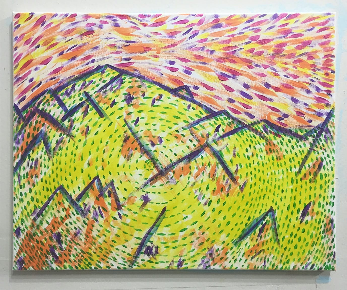 Being a nomad has made me fond of the objects I “live with” from a distance. I have a habit of thinking about the things in my house and how I left them. This became amplified with Covid. My memory felt more distant, reflective, and despairing. I often think of this painting in my bedroom. When would I see it again? What I am living with is the absence of my things — thinking about them and not seeing them. In the past, this painting was peaceful to me and a recognition that I was home, preparing for the next adventure. Now my memory of the fragmented, dashing, swirling brushstrokes of colorful mountains feels as if something else is at work in this landscape.