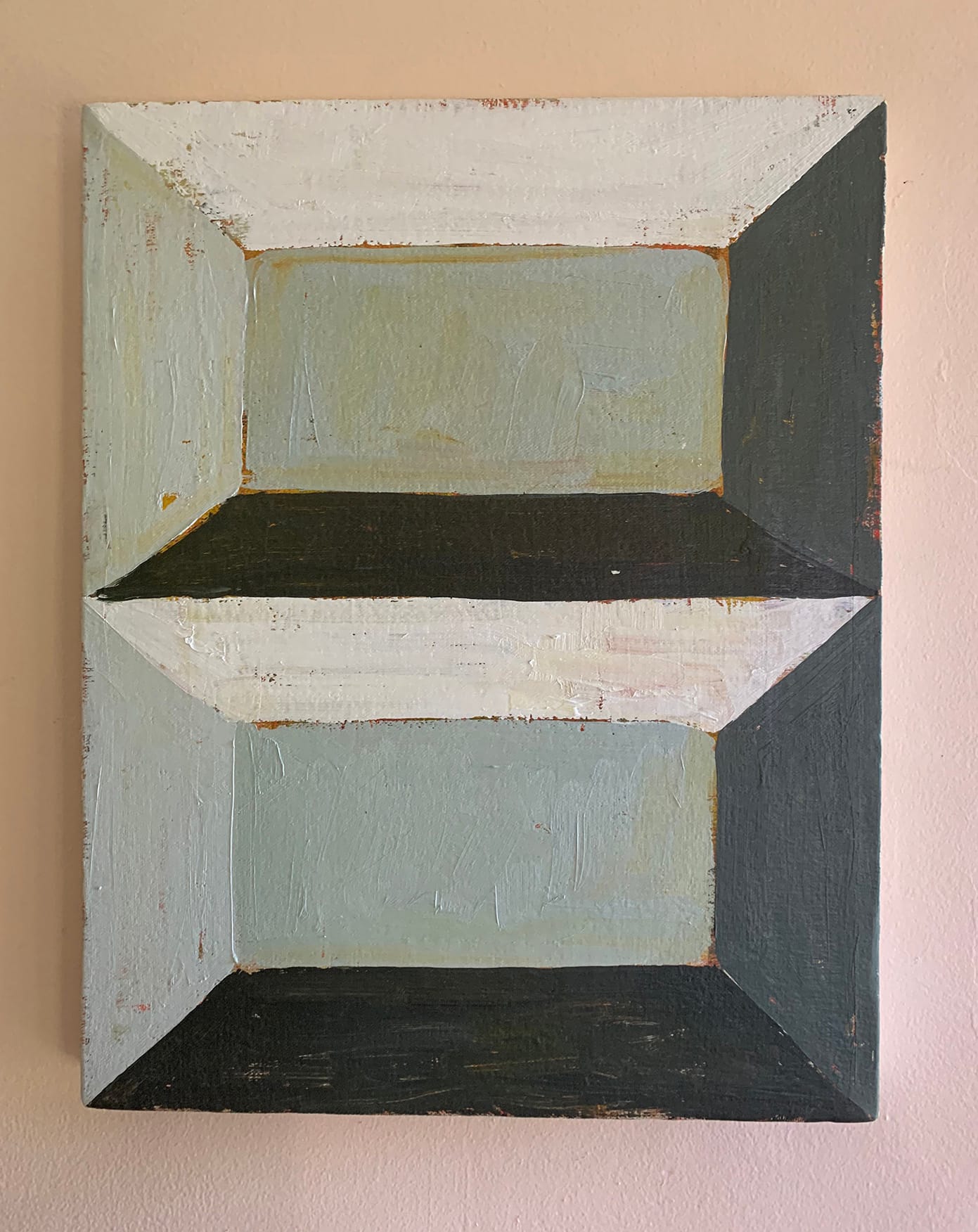 As our art world shrinks and collapses, I have worked this winter/spring to just keep going. Surprisingly, I found that small, structured yet provisional paintings, like this one, are what I turn to both for looking and making. It is a small painting that activates domestic space; a painting shaky in its making yet firm in its presence, resistant to aesthetics yet rooted in art historical reference. Anthony is a Boston-based painter and I purchased this painting from a show at the former et al Projects in Bushwick during the year I spent in New York at the Sharpe-Walentas Space Program, 2013-14.