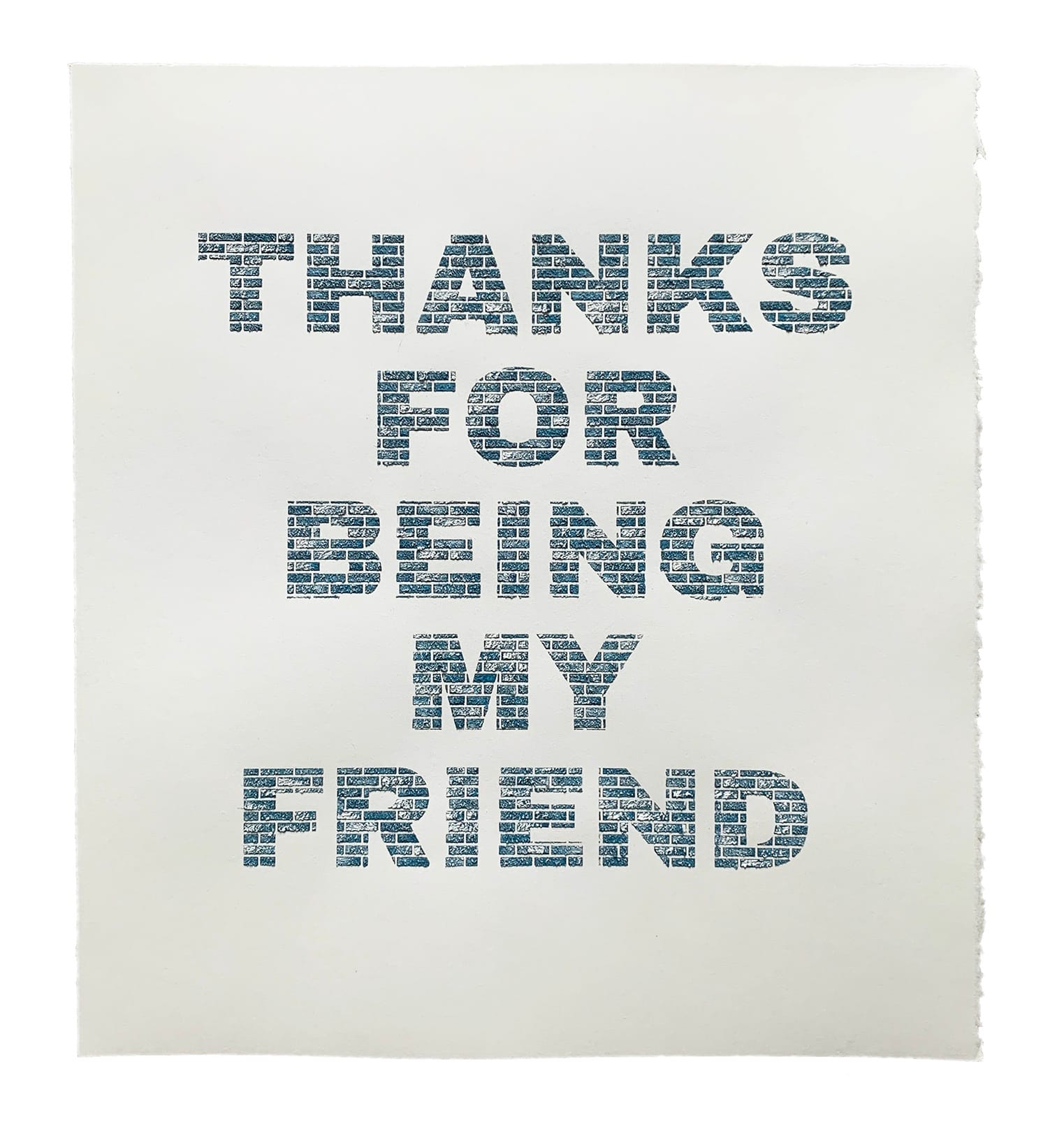 I had always read the work as an architectural facade turned into a communication, but now I think less about the painting itself and more about Andy making it. The composition of geometric shapes and soft colors on white paper appear calculated and organized according to the old rules of abstraction. The work is not flat. Ridges remain from layers of paint on every slowly built-up brick, leaving behind concentrated evidence of the hand.