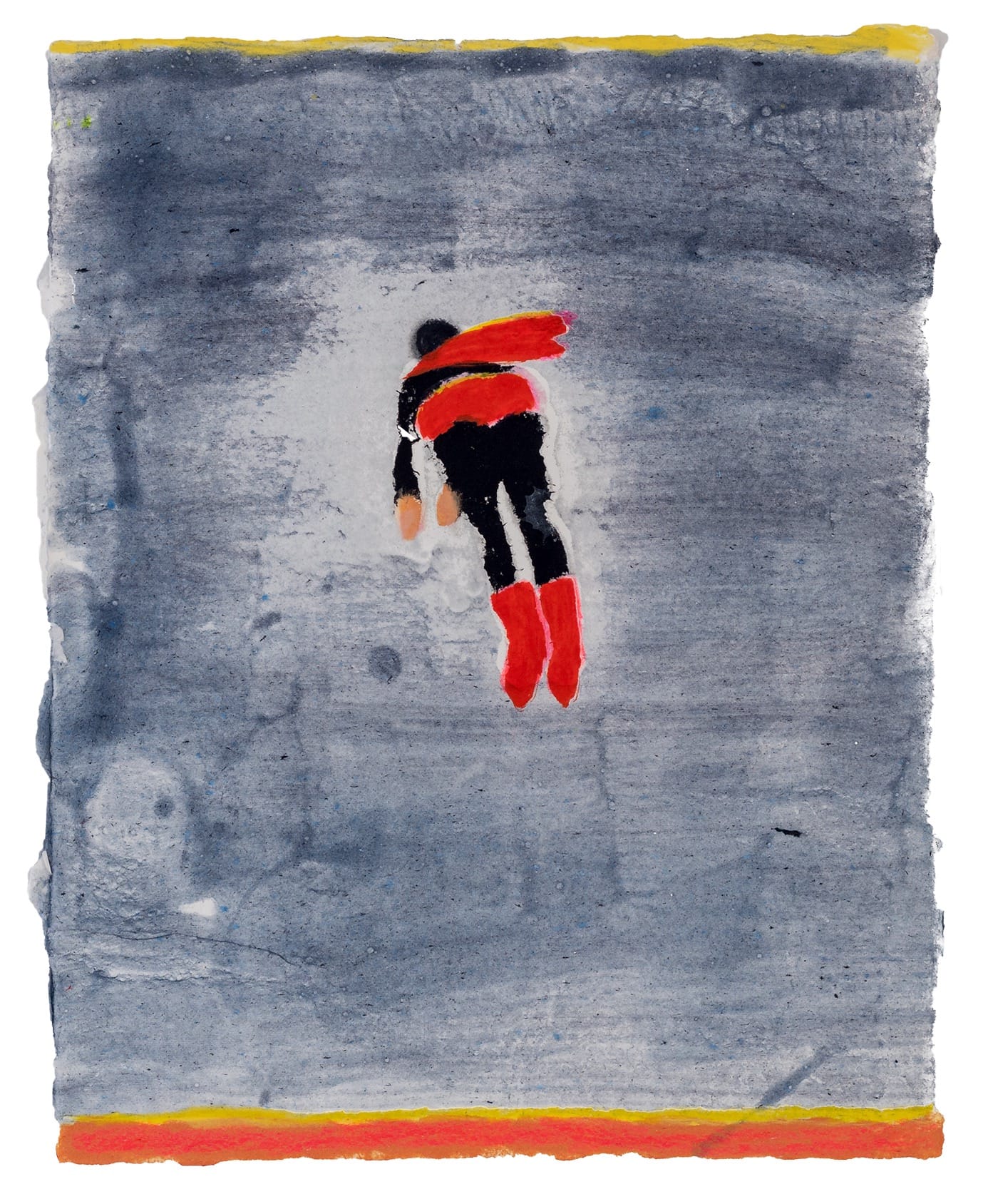 Brian Edmonds (Huntsville, Alabama): I included several works by Katherine Bradford in a group show I curated in 2014 during Bushwick Open Studios. One thing I love and respect about Katherine is how giving and kind she is with everyone, even someone she hardly knows. We spent an hour talking about painting and deciding on what works to include. On the day of the closing, she brought several works on paper for me to choose from. It came down to a work featuring a diver and one with Superman. I couldn’t help but choose the Superman. It’s so iconic. I remember Katherine commenting that most people preferred the Superman. She didn’t understand why.
