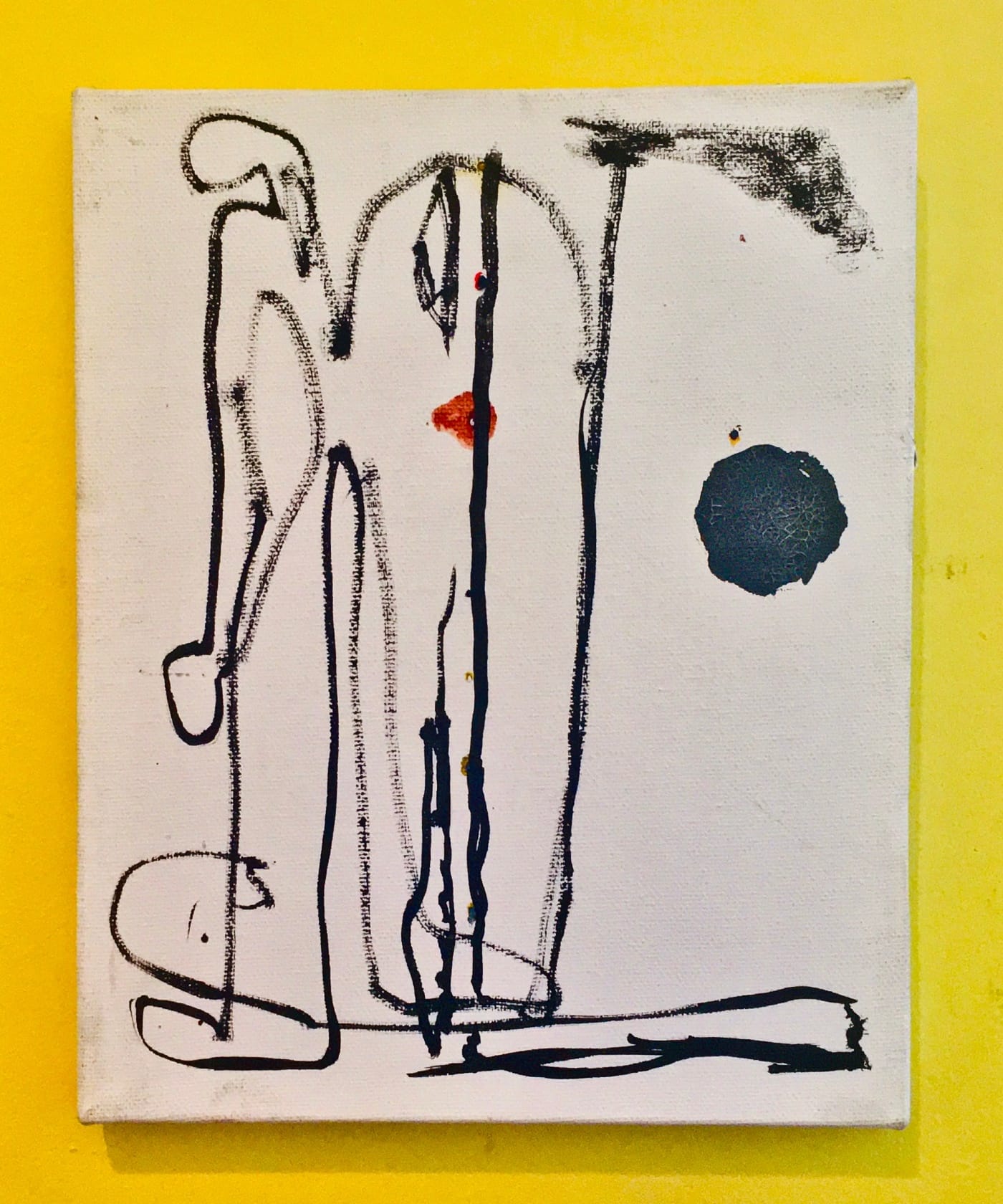 Jason Stopa (Brooklyn, New York): I have five paintings of equal dimensions hanging on my living room wall. One such painting by Ted Gahl seems to stand out in quarantine. It measures ten by eight inches. It is thinly painted, characteristic of many of Gahl’s paintings. It is a lyrical, line-heavy painting punctuated on the right side by an opaque, black circle. I have always thought of it as a quasi-abstract landscape. Having sat with it for the past six months in quarantine, it has taken on a fresh, new reading. It now feels cartoon-like, with a myriad of affects. What I previously read as branches and thicket, now appears as the outline of a large-bodied figure. It bears no specific features, but there is an anthropomorphic quality to the work, not unlike a lamp or a book in a Guston painting. For the rather small size of the painting, its scale is enormous, even a bit imposing, yet intimate and comical. Its limbs are mannerist, exaggerated. A red dot just above the center of the canvas, the only color other than black, now appears like the eye of a cyclops. I now believe it is a painting of a monster, or a monster’s former shell.