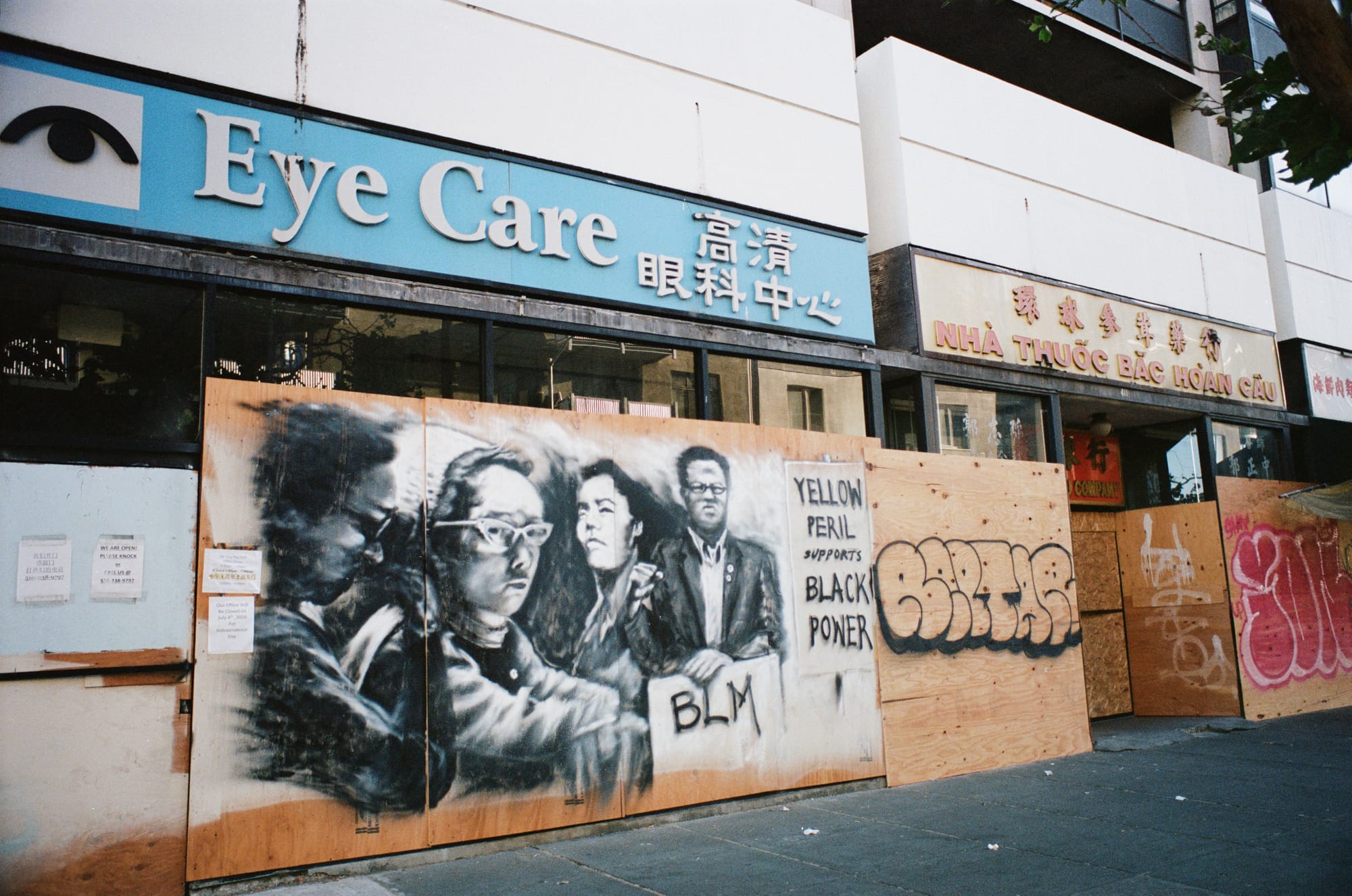 The artists' withdrawn photo series, Documenting Persistence in Oakland’s Chinatown, depicts the Oakland Chinatown communities’ expressions of solidarity with Black Lives Matter protests last summer.