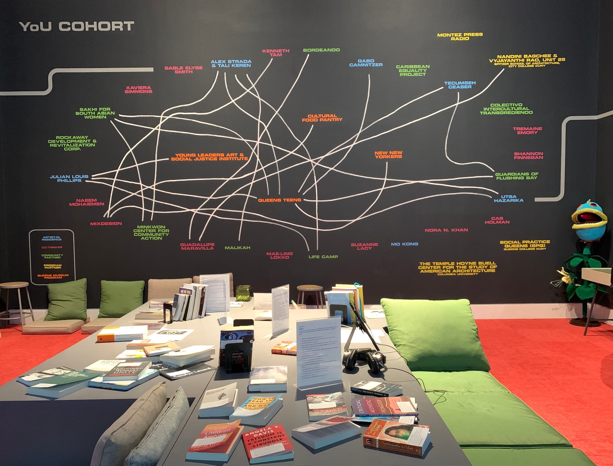 The YoU Artist-in-Residency (AiR) cohort consisted of six artists and one duo known for their socially engaged practices (Gabo Camnitzer, Tecumseh Ceaser, Utsa Hazarika, Tali Keren, Mo Kong, and collaborators Julian Louis Phillips and Alex Strada) and 12 “co-thinkers,” artists and other individuals in creative fields brought on to provide mentorship (among them Nora N. Khan, Suzanne Lacy, Guadalupe Maravilla, and Xaviera Simmons; a complete list of participants can be found here). Nine “community partners” from across the borough were selected to collaborate with the artists, including Guardians of Flushing Bay, which advocates for cleaner water in the Queens neighborhood, and Sakhi for South Asian Women, an anti-gender-based violence organization. A description of the program on the Queens Museum’s website closed with a quote from Ursula K. Le Guin’s science-fiction classic The Left Hand of Darkness (1969): “The only thing that makes life possible is permanent, intolerable uncertainty; not knowing what comes next.”