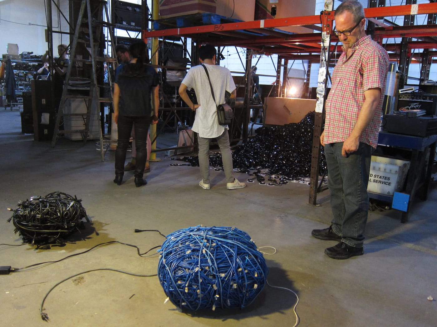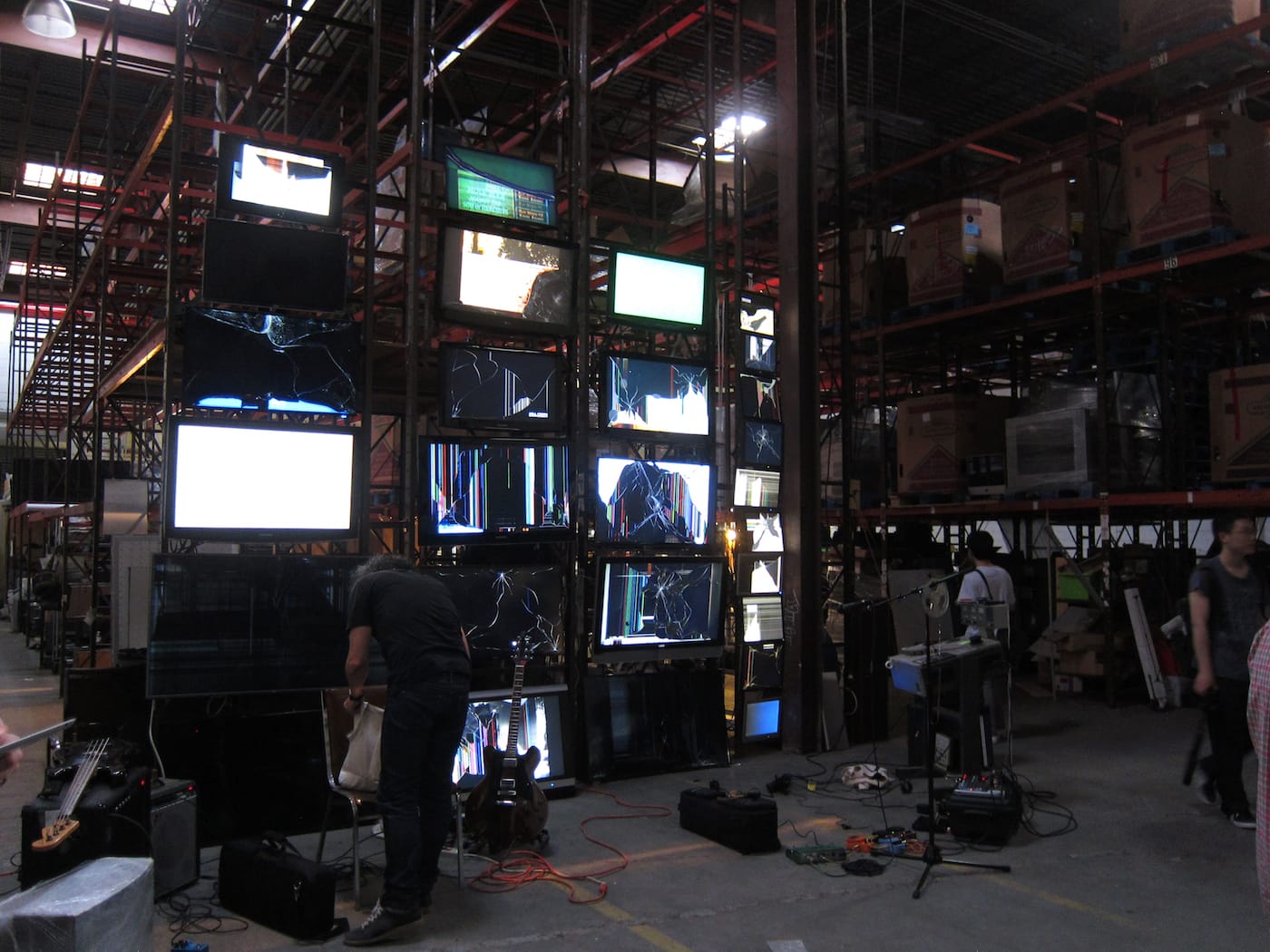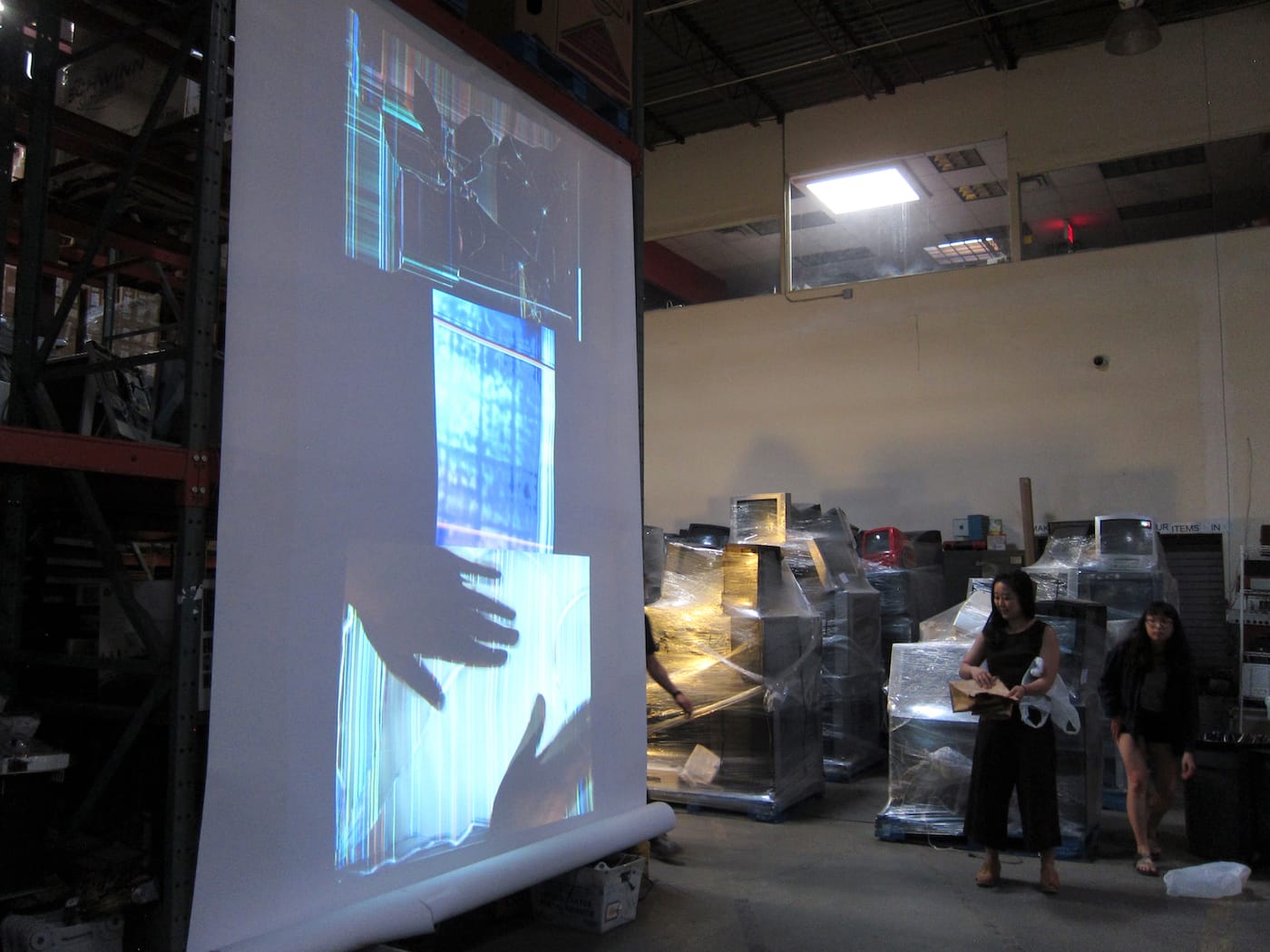 An outdated Walkman, a dust-filled VCR player, or a keyboard fizzled out from spilled sodas — such consumer electronics we no longer want are accepted with open arms at the Gowanus E-Waste Warehouse, where they’re sent off to be properly recycled or refurbished, then sold, to be enjoyed by someone else. Operated by the Lower East Side Ecology Center, the warehouse represents New York City’s largest municipal provider of e-waste recycling services, and it shelters thousands of items of technological detritus in limbo. On a recent evening, these objects were transformed into site-specific installations by a small group of artists, given alternative — albeit brief — lives with unexpected value.