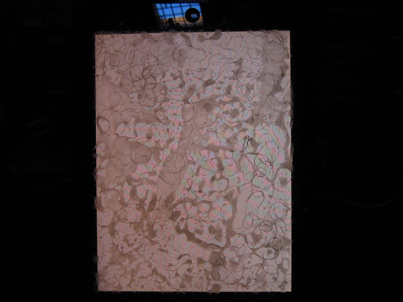Also highlighting the physicality of the digital screen were artists Faith Holland and Motoko Fukuyama. In Holland’s hands, iPads and and iPhones were treated solely as canvases — both digital and traditional ones. Four devices propped on a table looped GIFs she created, but that art was largely veiled by the layers of foreign material she applied to their screens, from nail polish to moisturizer to pubic hair. Nearby, a large video projection by Fukuyama looped footage of smashed screens, treated as surfaces for noisemaking: we were shown drumsticks and fingers tapping on broken glass, then footage of something being wrapped in plastic, layer after layer. The video was short but never-ending, documenting the afterlife of electronics in a form that resembled a catchy commercial.