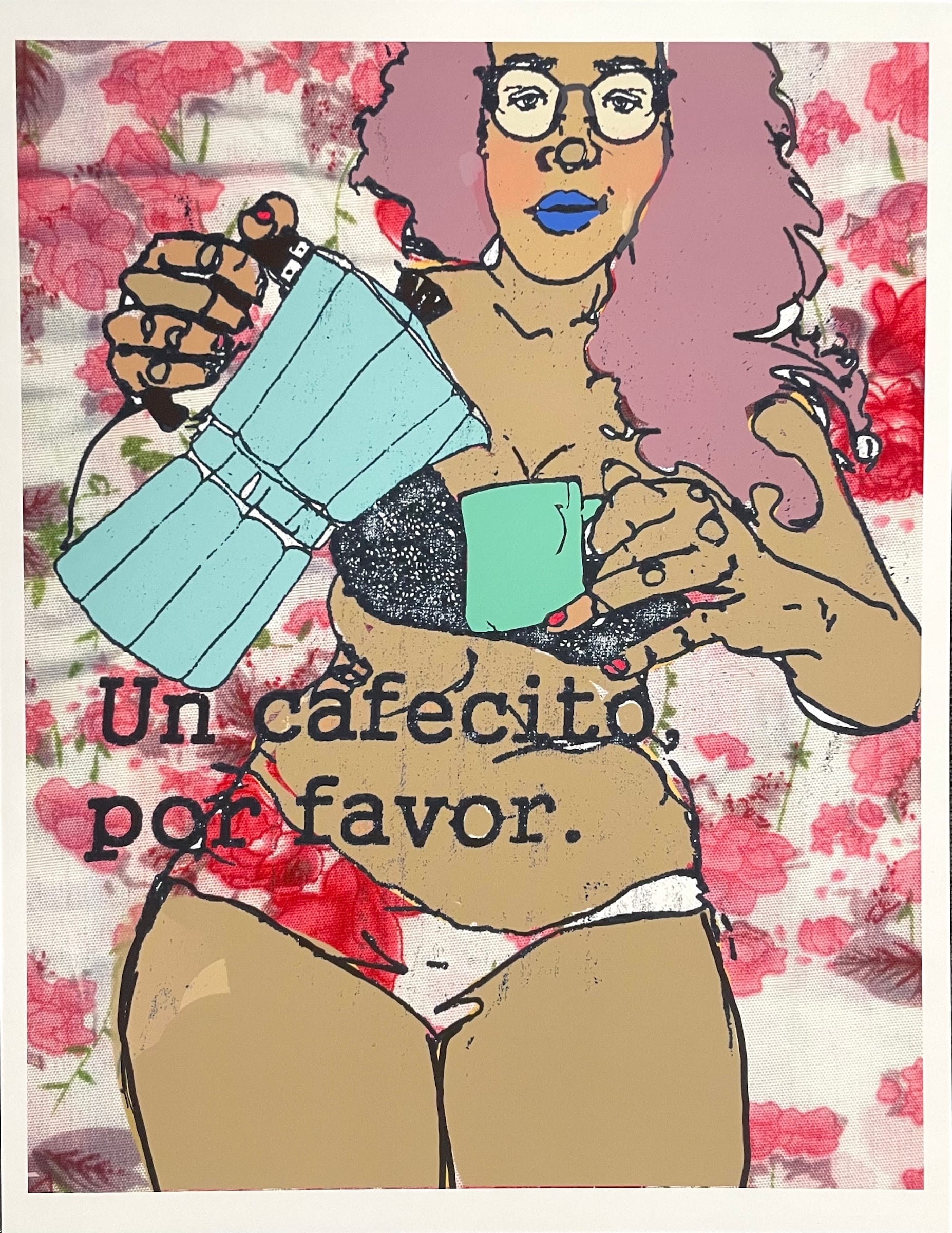 “Making prints is a way to bring a little bit of art to people who wouldn’t normally buy it,” New York-based artist Ruth Rodriguez told Hyperallergic. She makes deeply personal works, layering images such as photocopies of a lover’s clothing with brightly colored figures to probe the experiences of womanhood. “I wanted something that had a representation of my Dominican American culture, something funny and cute that was relatable,” Rodriguez said of her print series Cafecito Por Favor. “A lot of the women I draw are in their underpants or relaxing on the couch. I want to make my work feel familiar in an art space where it is often easy to feel intimidated.” Each print costs $25 and can be purchased here; the artist also sells handmade $5 holiday cards. —EV