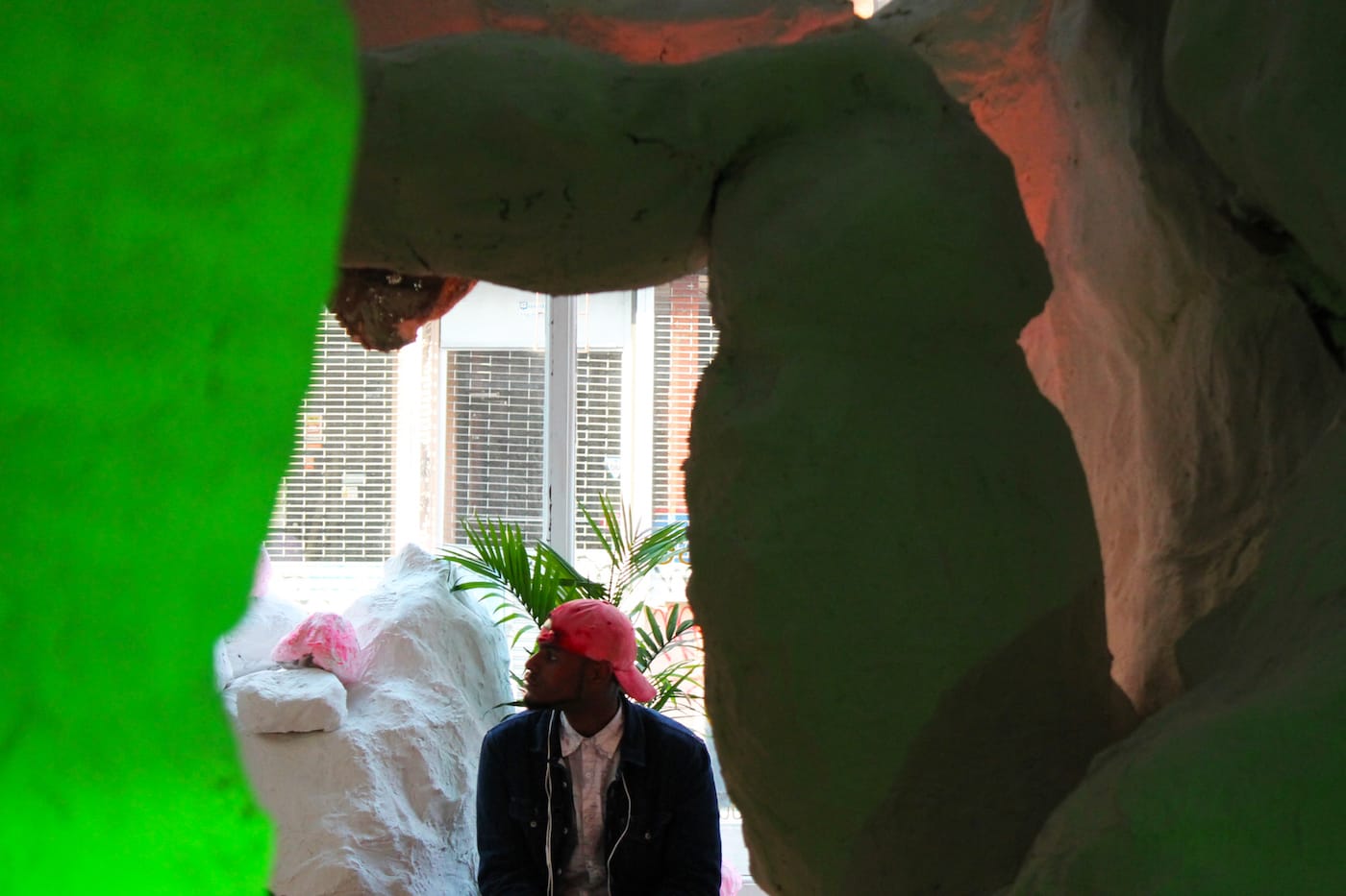 Lauren Halsey has been at work at Recess for nearly two months now, turning the small Soho storefront into “an interplanetary liquid environment composed of hyperreal gardens, fantasy landscapes, and pools of beauty water.” Halsey used everyday materials like cardboard boxes and duct tape to construct the fourth iteration of her “Kingdom Splurge,” an environment of funk-fueled liberation. Revel it in this week before its gone, and if you attend the closing reception, pick up a copy of a mix CD made by Halsey and Sable Elyse Smith, who penned an accompanying essay that’s being published as the CD booklet.