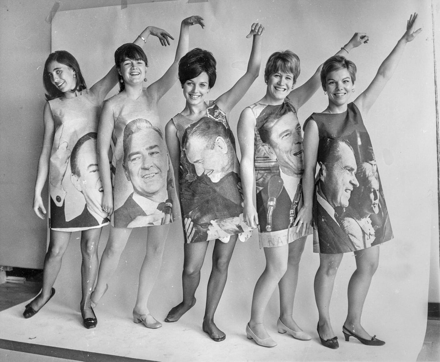 Besides your usual ad or poster, presidential campaigns have also produced cowboy hats, paper dresses, board games, and many other toys and decorative objects. Over 210 examples of these, housed in the Museum of Democracy/Wright Family Collections, will go on view in Campaigning for the Presidency, 1960–1972, tracing John F. Kennedy v. Richard Nixon to Richard Nixon v. George McGovern. I expect the ’60s ephemera will be less repulsive than a nude sculpture of Trump.