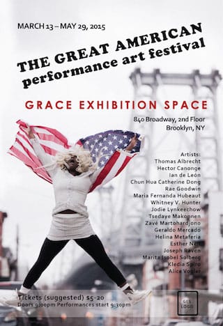 What does it mean to be American? This series of performances will explore that topic at one of the city’s performance art laboratories. Borders, sexuality, ethnicity, race, class, prohibitions, taboos, and everything else will be under scrutiny as performers including Kledia Spiro, Maria Fernanda Hubeaut, jodei Lyn-Kee-Chow, Rudi Salpietra, Ivy Castellanos, and Fritz Donnelly give us their interpretations.