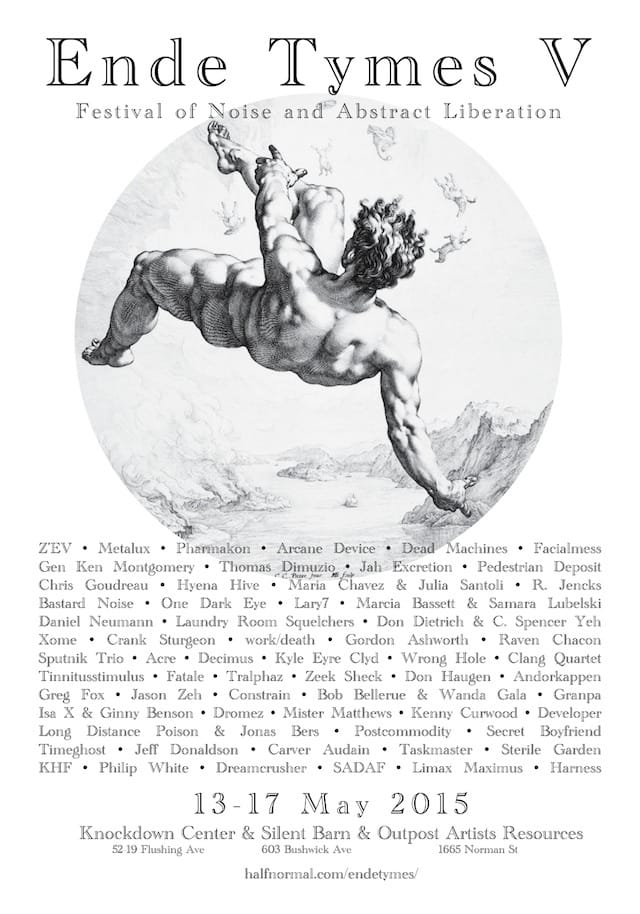 The Ende Tymes Festival of Noise and Abstract Liberation is a four-day experimental music festival spanning shows at the Knockdown Center, the Silent Barn, and Outpost Artist Resources. The venues will host noise installations during the day with free admission and ticketed shows with extensive line-ups in the evening. Reviewing last year’s End Tymes for Hyperallergic, Charles Eppley wrote that the event “felt less like a music festival than it did a communal gathering, in part because of its no-frills attitude and open structure.” Leave the earplugs at home — or not, if you’re feeling cautious — and get ready to have your ears ringing for days. —VV