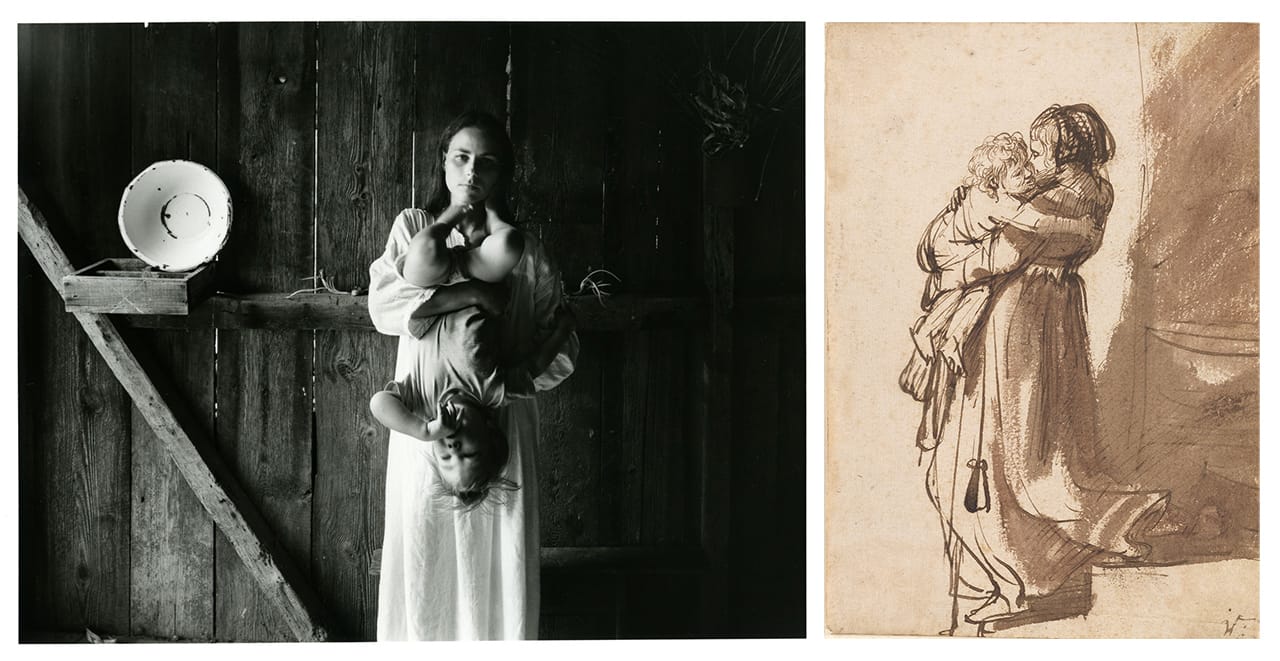 For this exhibition, photographer Emmet Gowin combed through his 50 years of his work and delved into the archives of the Morgan to find “hidden likenesses” between the two. In one juxtaposition, Gowin places a photograph of his wife, Edith, holding their son Elijah alongside a 15th-century drawing by Rembrandt. Gowin’s pairings point to formal and conceptual similarities between the images, and he draws from the Morgan’s rarities, including illuminated manuscripts and historical documents. —KL