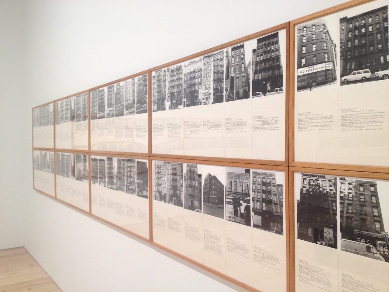 Compiled from public records, Hans Haacke’s “Shapolsky et al” (1971) documents the business transactions and properties of New York City slumlord Harry Shapolsky. Haacke sought to include the work in a solo exhibition at the Guggenheim slated to open in spring 1971, but, fearful of a potential lawsuit, the museum cancelled Haacke’s show — a move that led to protests by the Art Workers’ Coalition and the later dismissal of museum curator Edward Fry. Currently on display as part of the new Whitney’s inaugural installation, scholar Rachel Churner will discusses the legacy of this seminal work of institutional critique. —TM