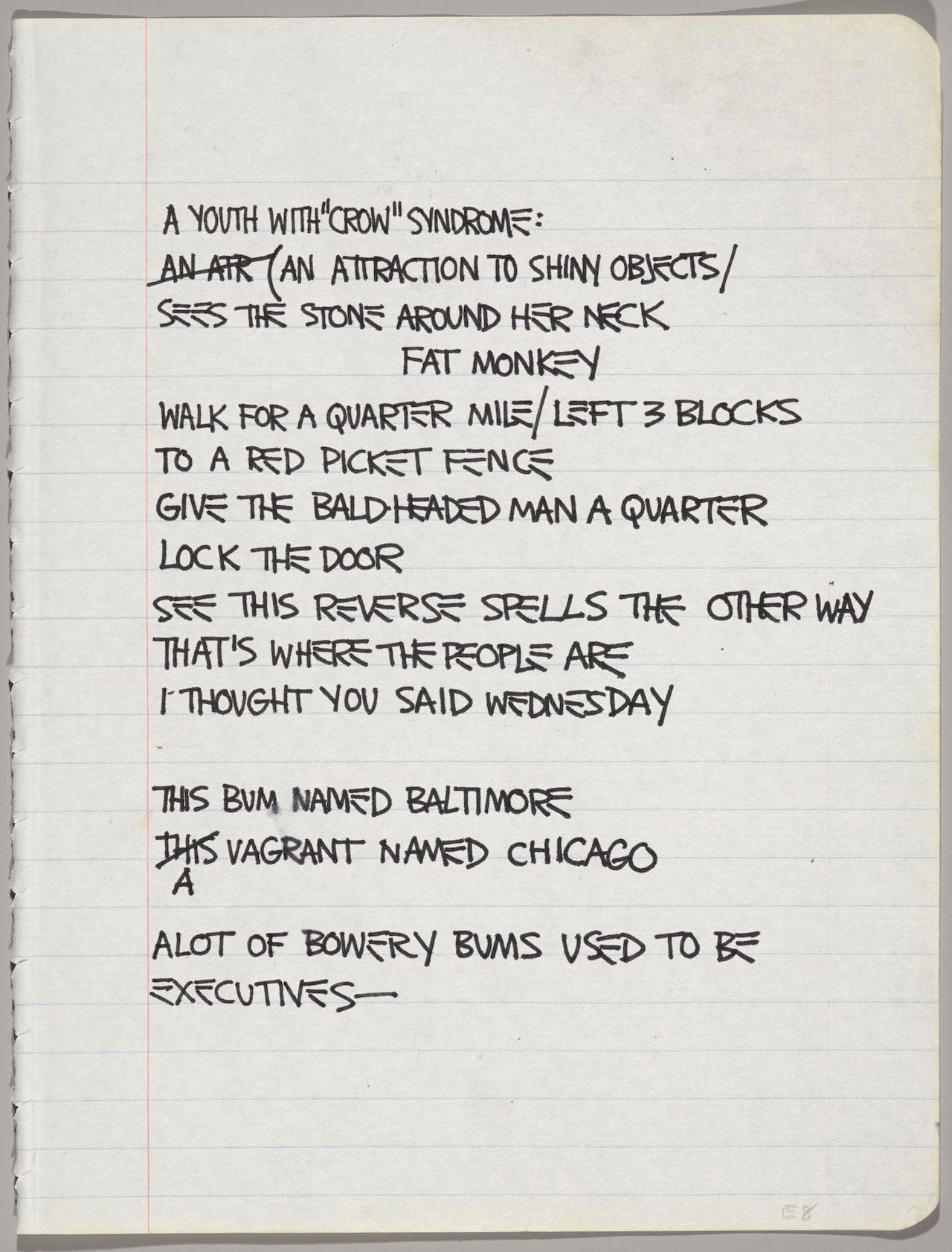 Jean-Michel Basquiat’s work has become so iconic, so endlessly reproduced, that’s it’s incredibly difficult to assess with fresh eyes. There’s little doubt that Basquiat wanted to be famous (his text-laden canvases frequently refer to celebrity), and once he was discovered, a cadre of collectors and dealers propelled him to superstardom as fast as they could. Basquiat: The Unknown Notebooks is both compelling and frustrating — it captures the impact of fame on the artist’s practice, but it also capitulates to the fetishization of his celebrity (his Brooklyn Museum membership card is displayed in a perspex case at the exhibition’s entrance). When and why, for instance, were the pages of his notebooks separated and individually framed? Did Basquiat ever suspect that his work would be treated this way? (By contrast, the mistakes in his text pieces seem artfully arranged.) The Unknown Notebooks might transform your take on the artist, but it will also raise many more questions than it answers. —Tiernan Morgan