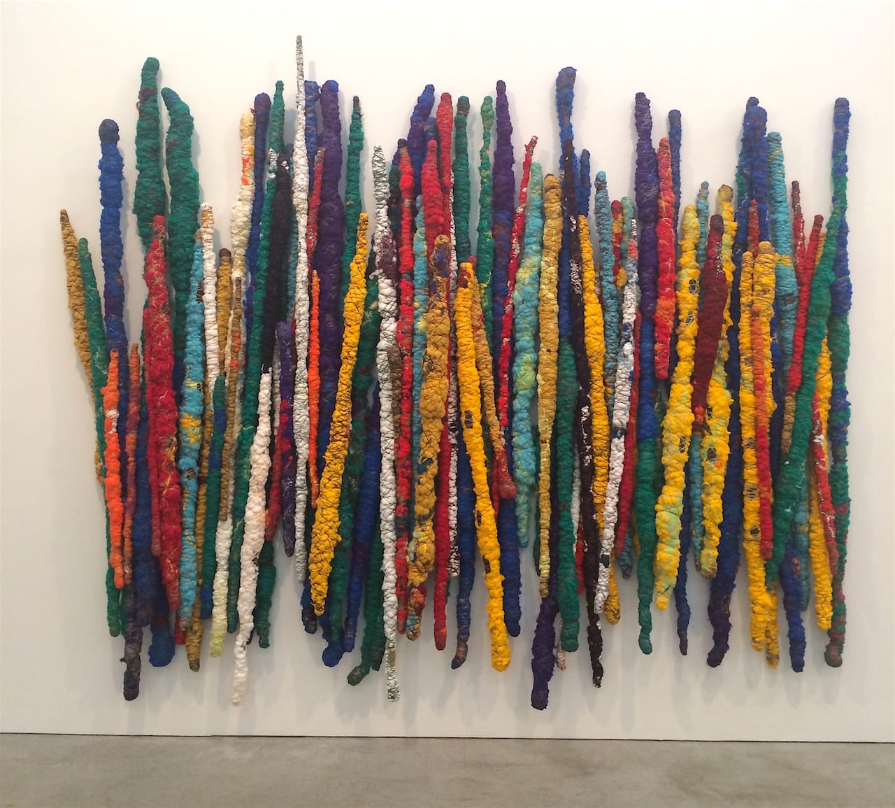 Contemporary art’s most tireless textiles technician hits all conceivable extremes of texture, tone, and scale in this show, which spans small, hand-woven works, which have all the intimacy of private letters, to bamboo sticks wrapped in colorful wool and bundled together like polychromatic jungles. Most surprising may be the monochromatic linen-on-board works, which evoke seminal moments in Minimalist abstract painting. —BS