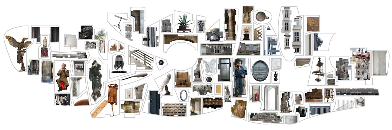 Two years ago, Ilit Azoulay began researching the history of buildings across Germany. The resulting installation comprises 85 separate photographs, each representing something or someone she encountered along the way, each corresponding with an artistic audio guide that offers insight into its meaning. That nearly 30-foot-long rebus will go on view at MoMA this month, in the annual New Photography show, while at Meislin, Azoulay will display a new piece of the puzzle: a different, collage-like configuration of some of the original images.