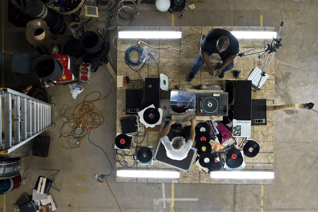 In this video collaboration, Larson and Gatson, who went to art school together nearly 30 years ago, riff on The Adventures of Huckleberry Finn by sailing their own raft down a river of musical nostalgia. Standing atop a 10-square-foot moving platform in Larson’s studio, the pair play records from their personal collections, including music by Patsy Cline and Fats Domino. A chance to see a more personal, playful side of two artists known for their expertly crafted work.