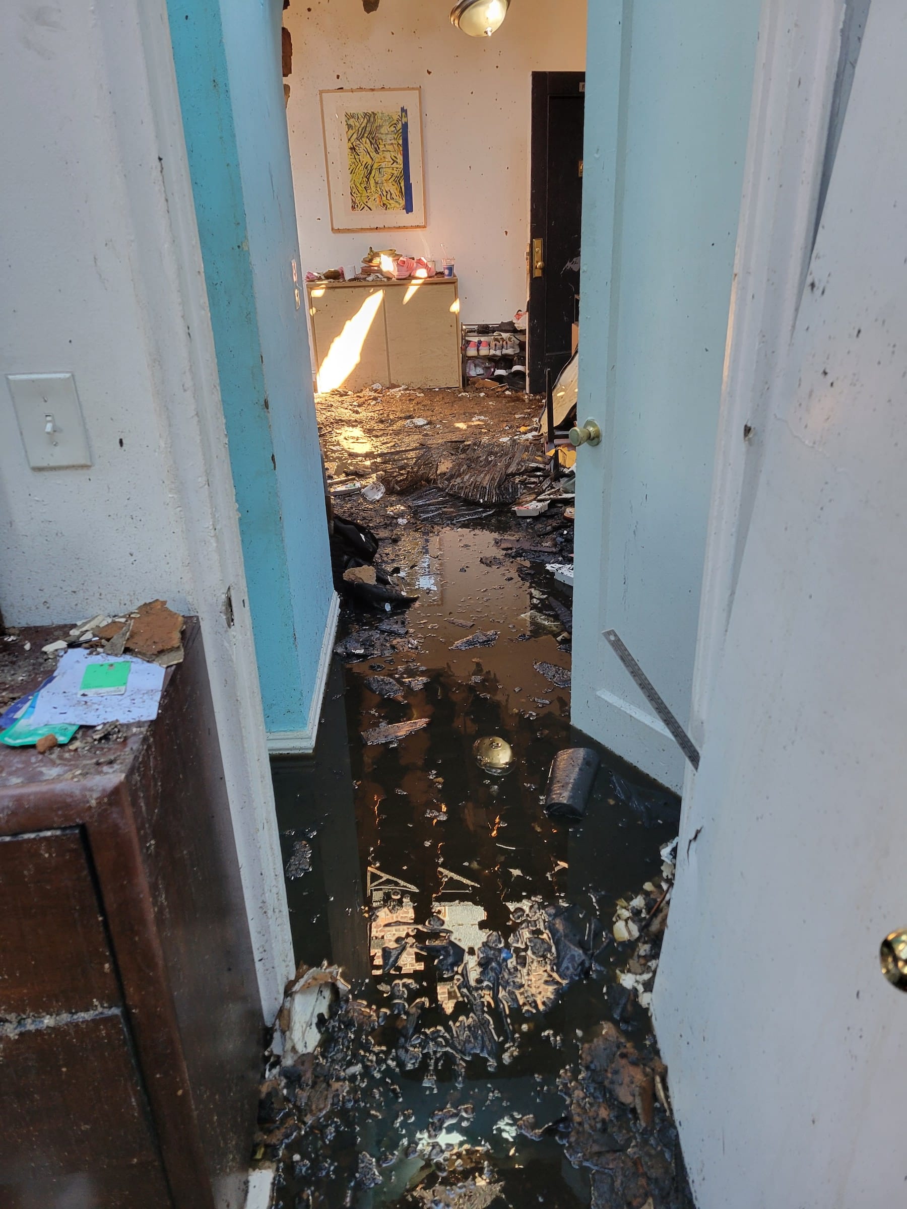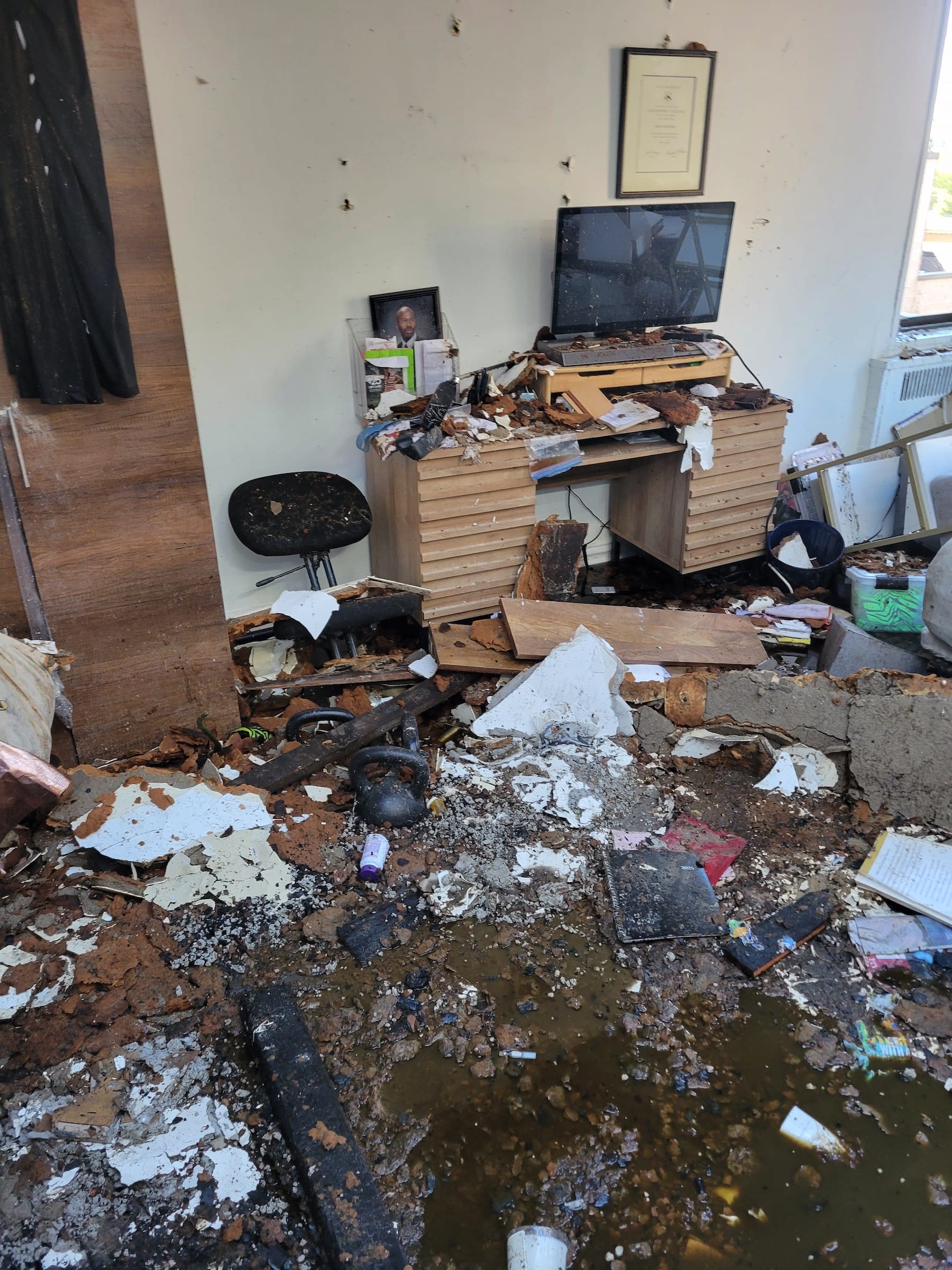 Photos and video of her apartment in the aftermath show a collapsed roof and soot covering nearly every square inch of the unit. It was one of three apartments on the top floor gutted by the fire.