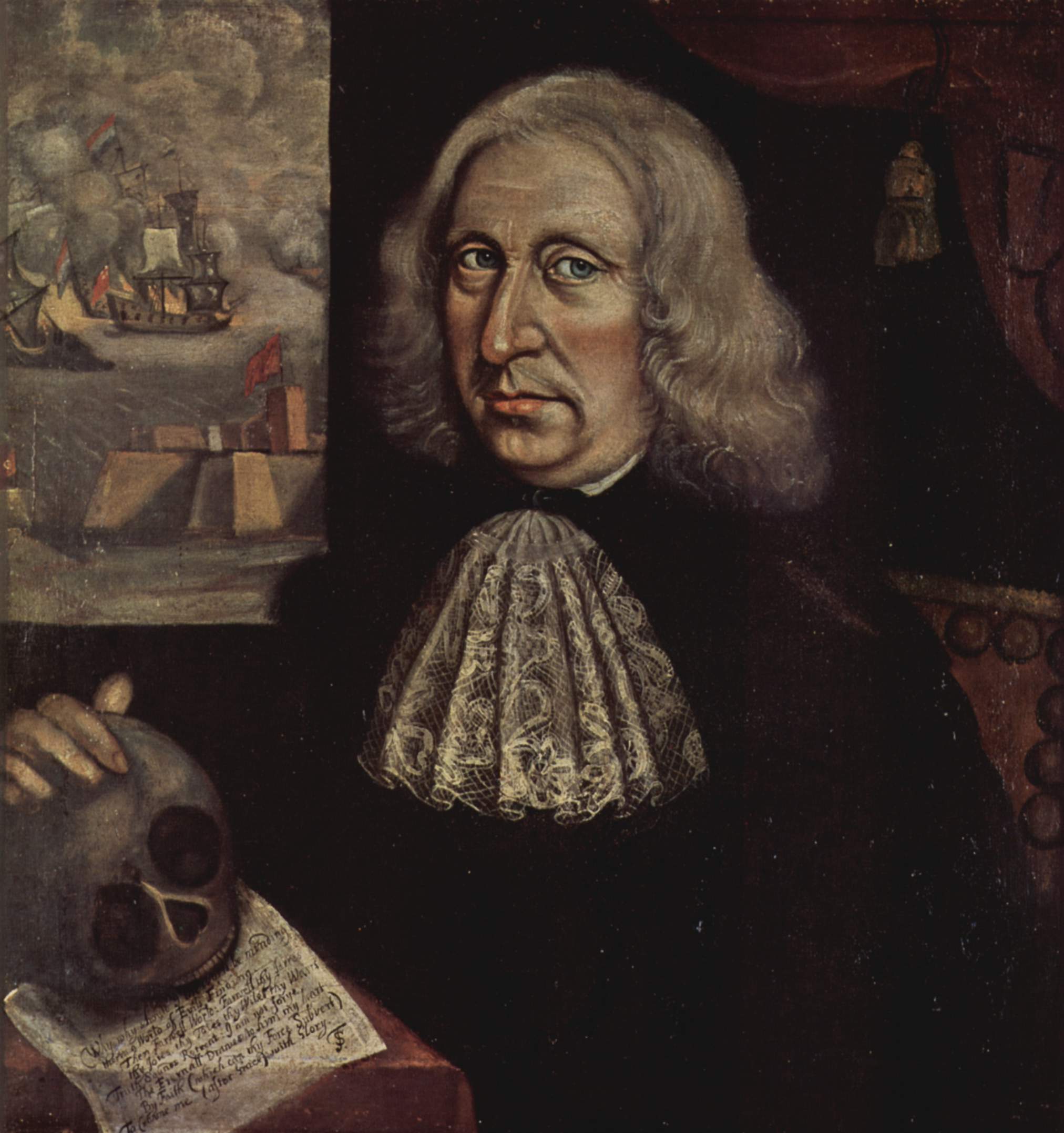 Such fascinations with the macabre persisted across religious affiliations and geographies. Later that century and across an ocean, the American Puritan artist Thomas Smith presents himself with a hand laid on a skull in a 1680 self-portrait in the new country’s earliest extant self-portrait. Simultaneously, in the Protestant Netherlands, memento mori encompassed the form of Vanitas paintings. Encouraged by both the Protestant reluctance to depict explicitly religious subjects like saints, as well as an anxiety over Holland’s commercial prominence, the Vanitas is ironically a lush and rich warning about the lush and rich life.