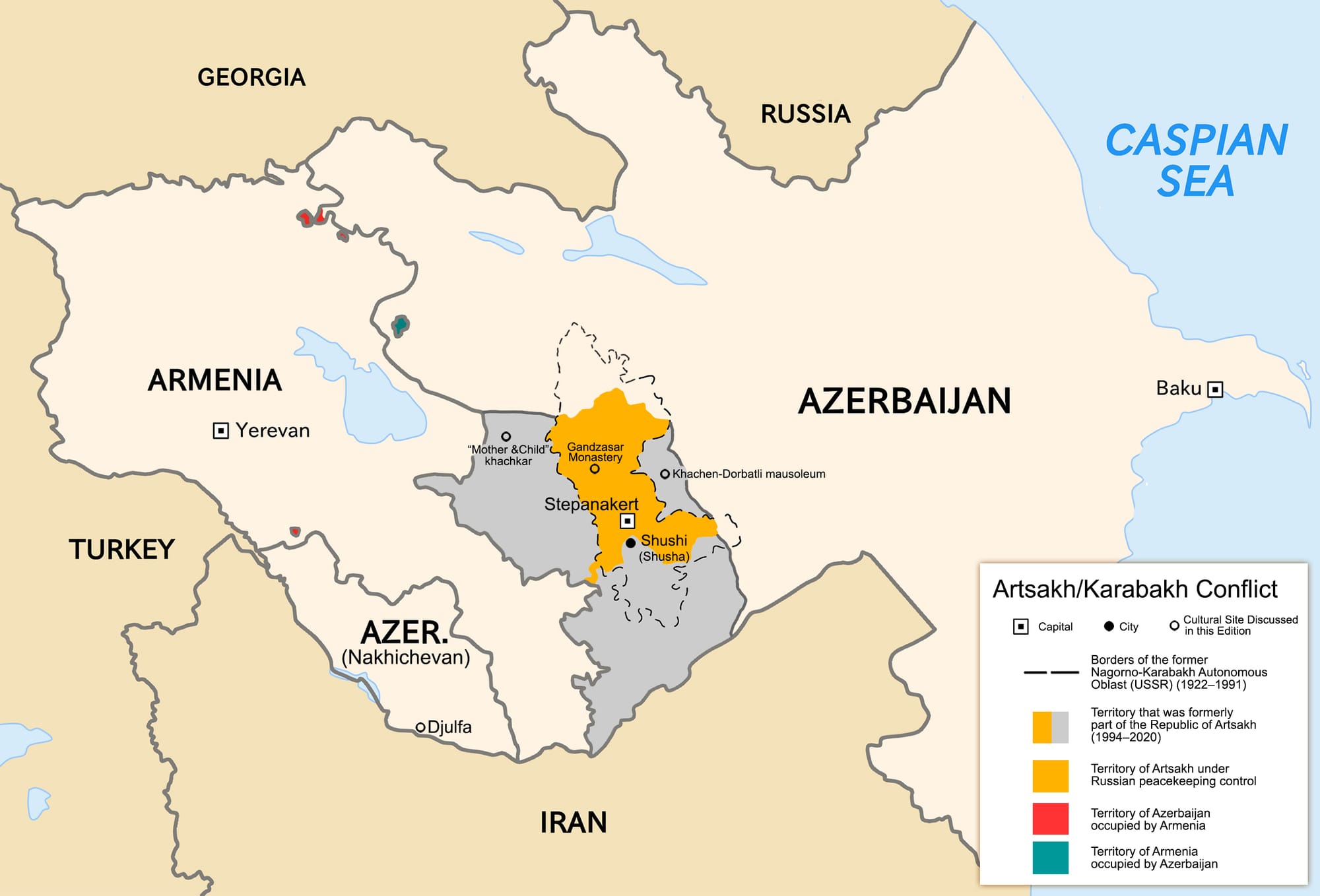 For those of you without context for the threat to Artsakh’s cultural heritage, I will summarize the events. Last September, while the world was obsessed with the US election, Azerbaijan, aided by Syrian Islamist rebels and Turkish forces, attacked the Republic of Artsakh. The territory, which declared independence after the fall of the Soviet Union, has never been governed by an independent Azerbaijan and was unrecognized by governments around the world. The roughly 44-day war led to over 10,000 deaths and the conquest of most of the Armenian-majority region, as well as the turn over of territories that contain hundreds of Armenian religious and secular monuments that date back millennia.
