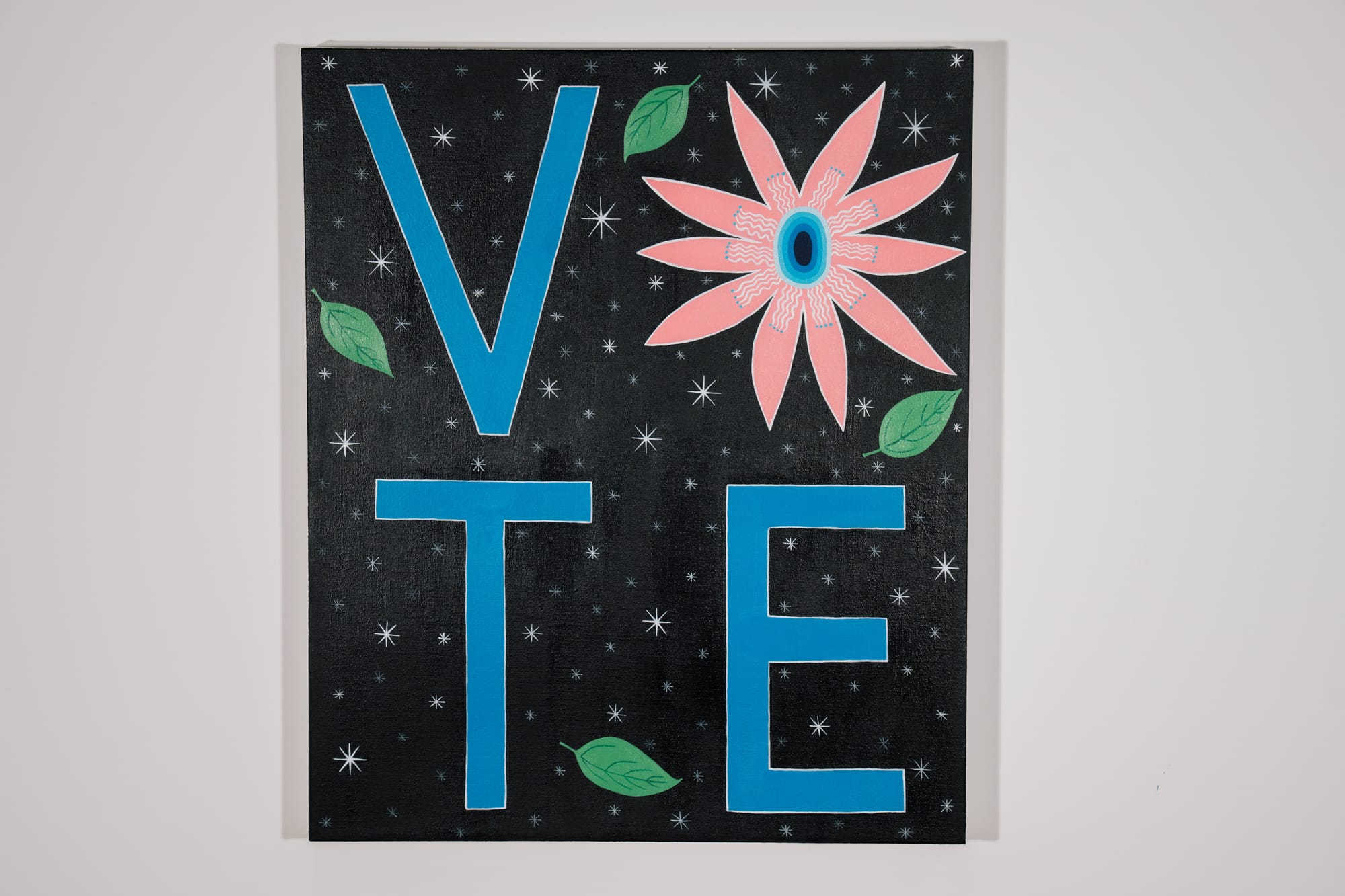 Los Angeles-based painter Caris Reid painted a floral representation of the word "vote" for a campaign organized by Art for Change and Michelle Obama's organization When We All Vote.