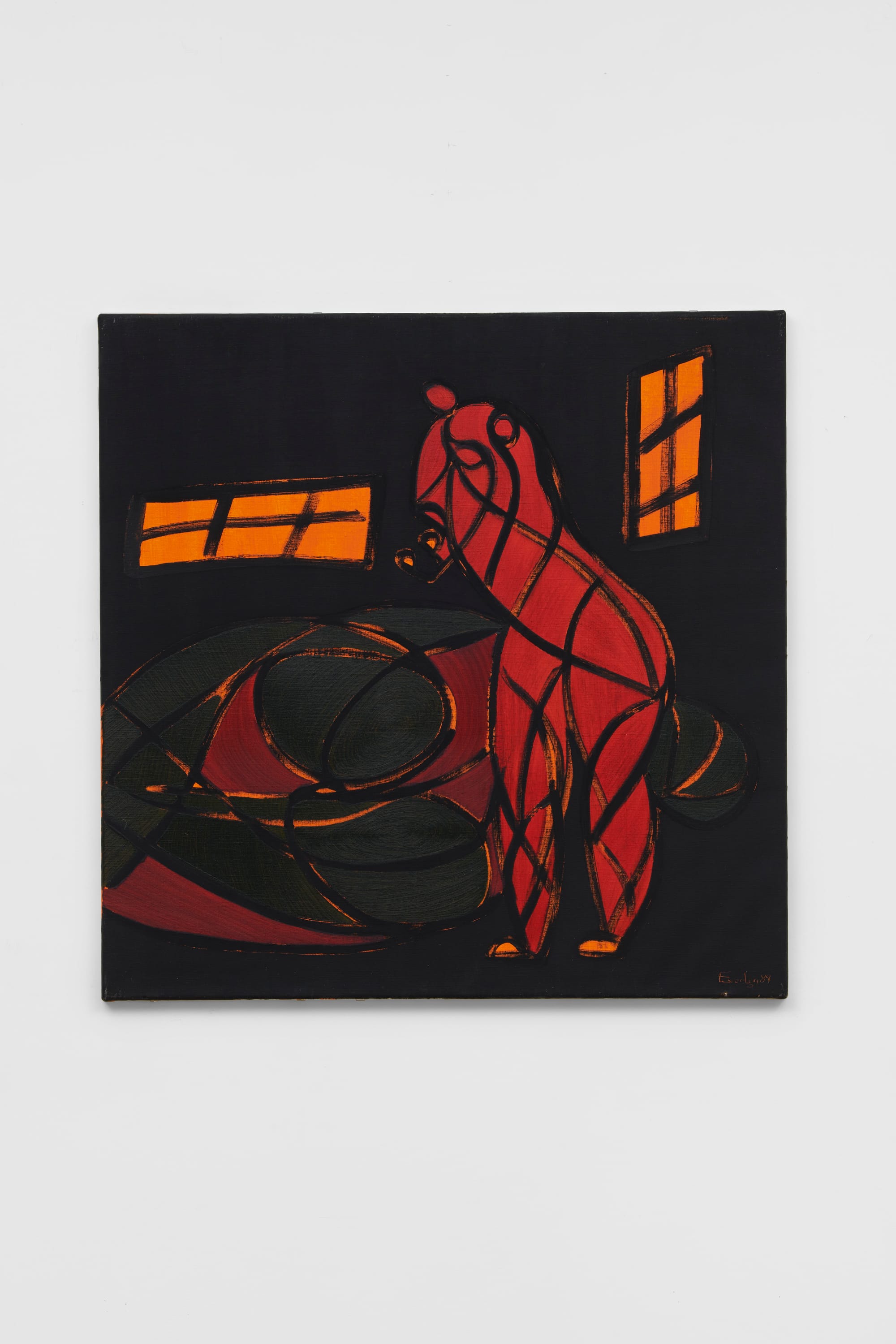 The first of Dujourie's two works is a small and grainy film showing her naked form turning on a bed, the second a muscular sculptural intervention – a plate of pink-painted steel, leaning against a wall, which has been painted black –that tosses a brick in the general direction of the males who dominated Minimalism. This is interesting and slightly surprising, the fact that a pugnacious feminist work has been drawn into the orbit of Arendt's book.