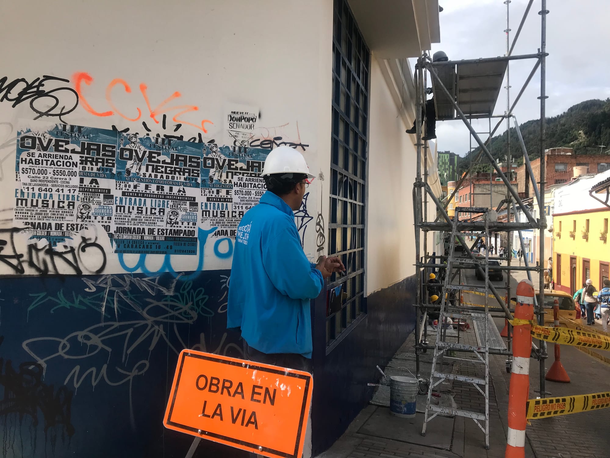 The mayor of the Colombian capital, Enrique Peñalosa Londoño, has been implementing a plan to restore and paint 2,500 houses in the historical downtown area of Candelaria. But in the process, he is clashing with graffiti artists whose colorful murals have transformed the area and brought tourists to the neighborhood. “It’s impossible to get rid of the graffiti, you can’t put a police officer in front of every single wall, it’s not going to work,” Dimaté told me.