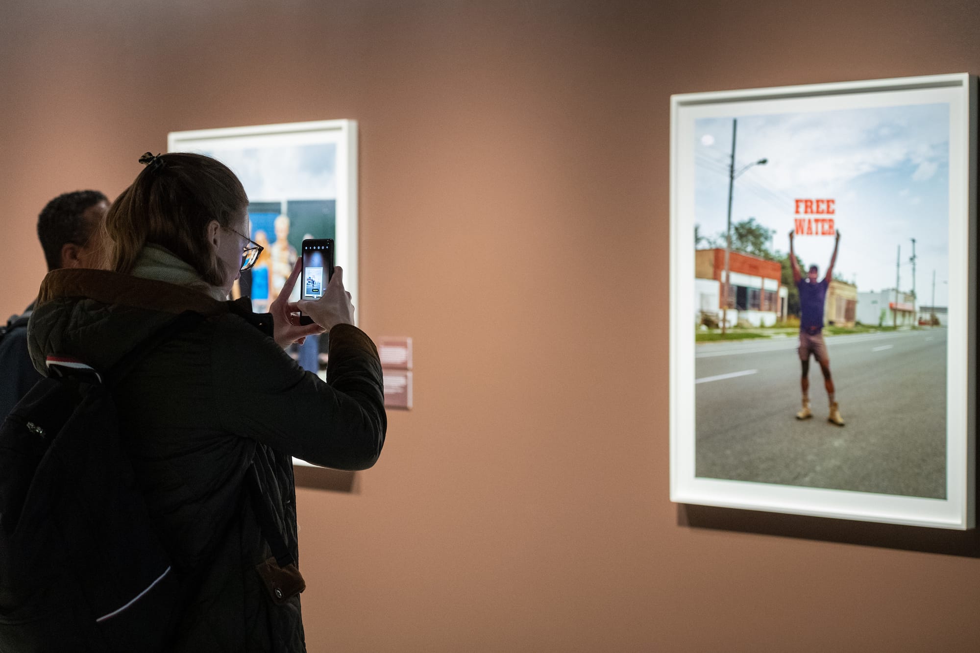 All three acts from Frazier’s photo series have been shown concurrently in Michigan over the last year in a collaboration between the Flint Institute of Arts, which ran Act I September to December of 2022; the Michigan State University Broad Art Museum, which continues to show Act II through January 29 of this year; and Stamps Gallery, which closed the presentation of Act III with the recent January 16 performance by Sister Tour. The event was packed with Flint residents, including former Flint Mayor Dr. Karen Weaver and former beauty shop owner Mary J. Williams, who offered up the empty lot that was once the site of her salon — to house the water generator.