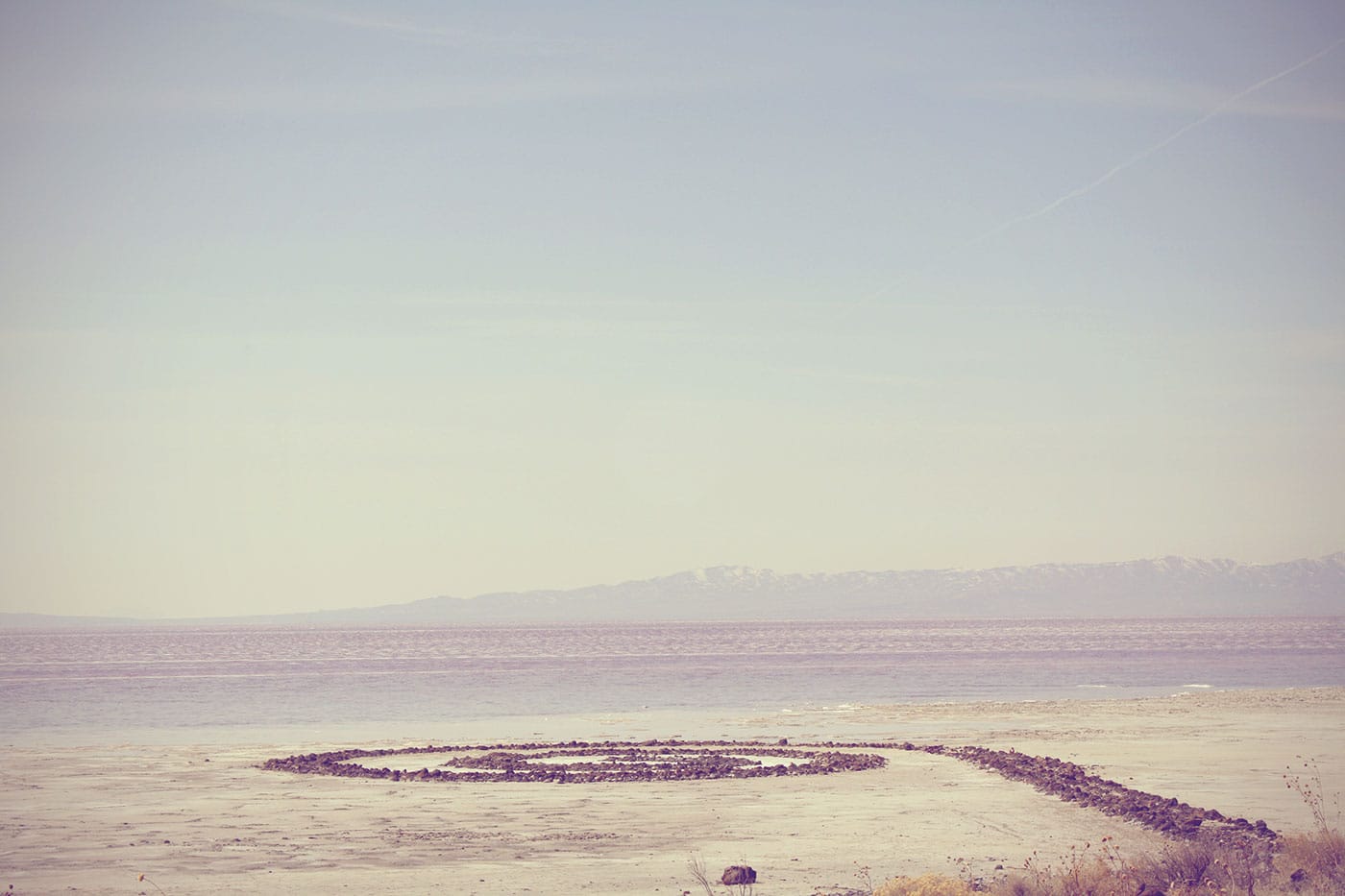 Indeed, the artwork is situated in a part of the lake where the water, or at least what remains of it, is reddish — or pinkish, or purplish, or orangeish, depending on the conditions at the time of one’s visit — due to an array of halophilic microorganisms that thrive in high-salt environments. To Smithson, the pigmentation evoked the primordial seas.