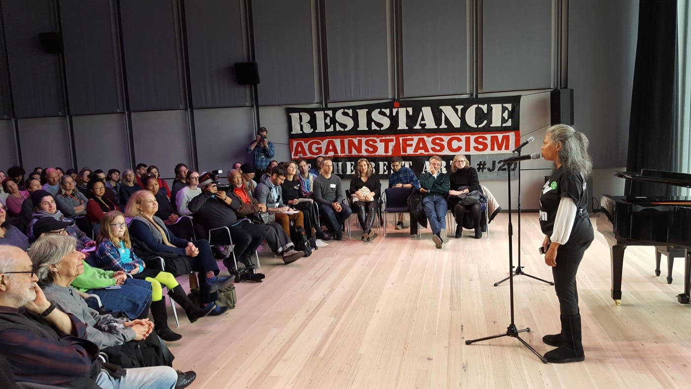 We need to organize more powerfully than before in coming years. We are dealing with a whole new level of official racism, bigotry, and an unfettered 1%. The anti-fascist Speakout was only a beginning in organizing and one that we hope to learn from as we move forward.
