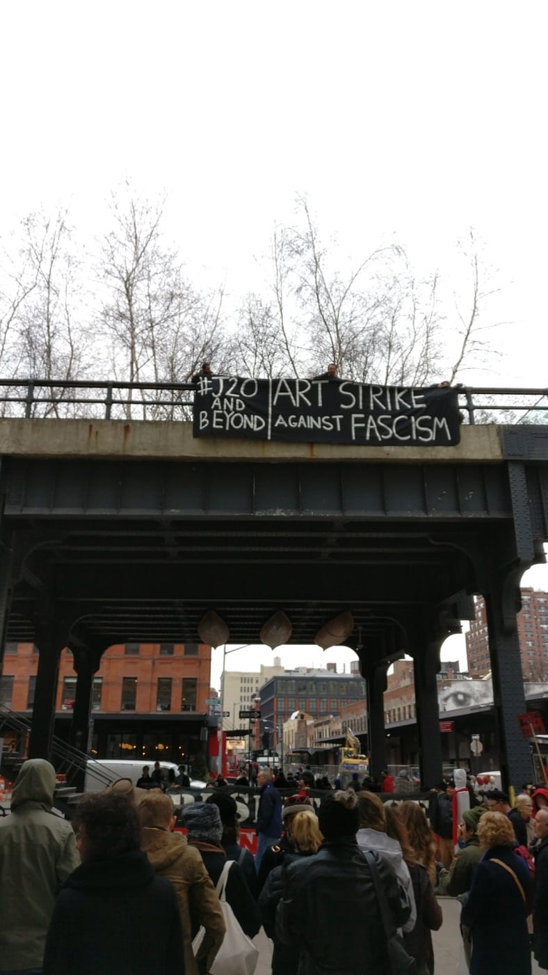 Occupy Museum’s event was in solidarity with the call for a J20 art strike. In addition [to] this event, the museum’s response included special tours of the Human Interest exhibition focused on race, ethnicity, immigration, and America identity; Open Discussions with artists and Whitney staff on these topics; and the museum offered pay-what-you-wish admission, all to affirm the Whitney’s commitment to open dialogue, civic engagement, and the diversity of the art and culture of the United States.