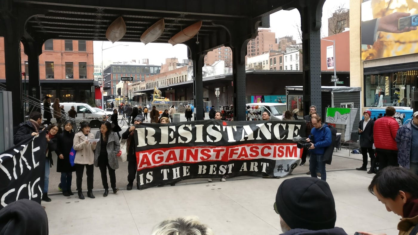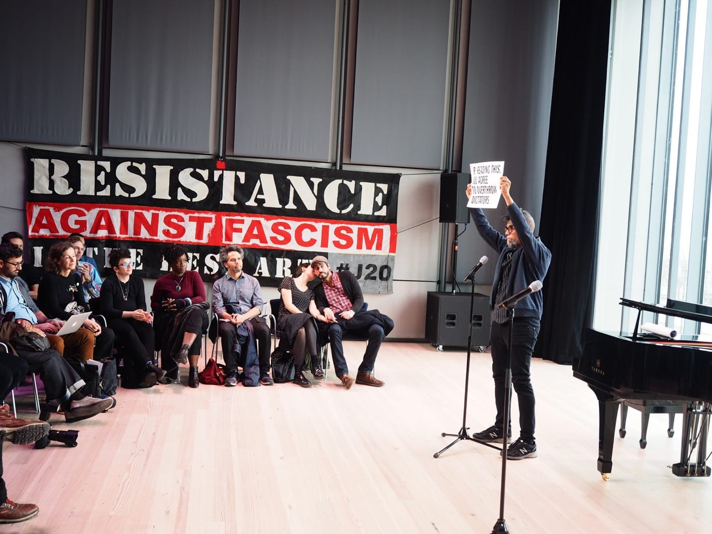 This testimony strikes me as genuine in its regret and adamantine in its conviction that the event made an important symbolic and political statement. Fischer also emphasized to me, concerned by my apprehension at how the project was executed, that the Whitney was “the only blue-chip museum” in Manhattan to respond to their call for this protest, and he is leery of falling into the trap of internecine fighting among the left when we need to be united in resistance.