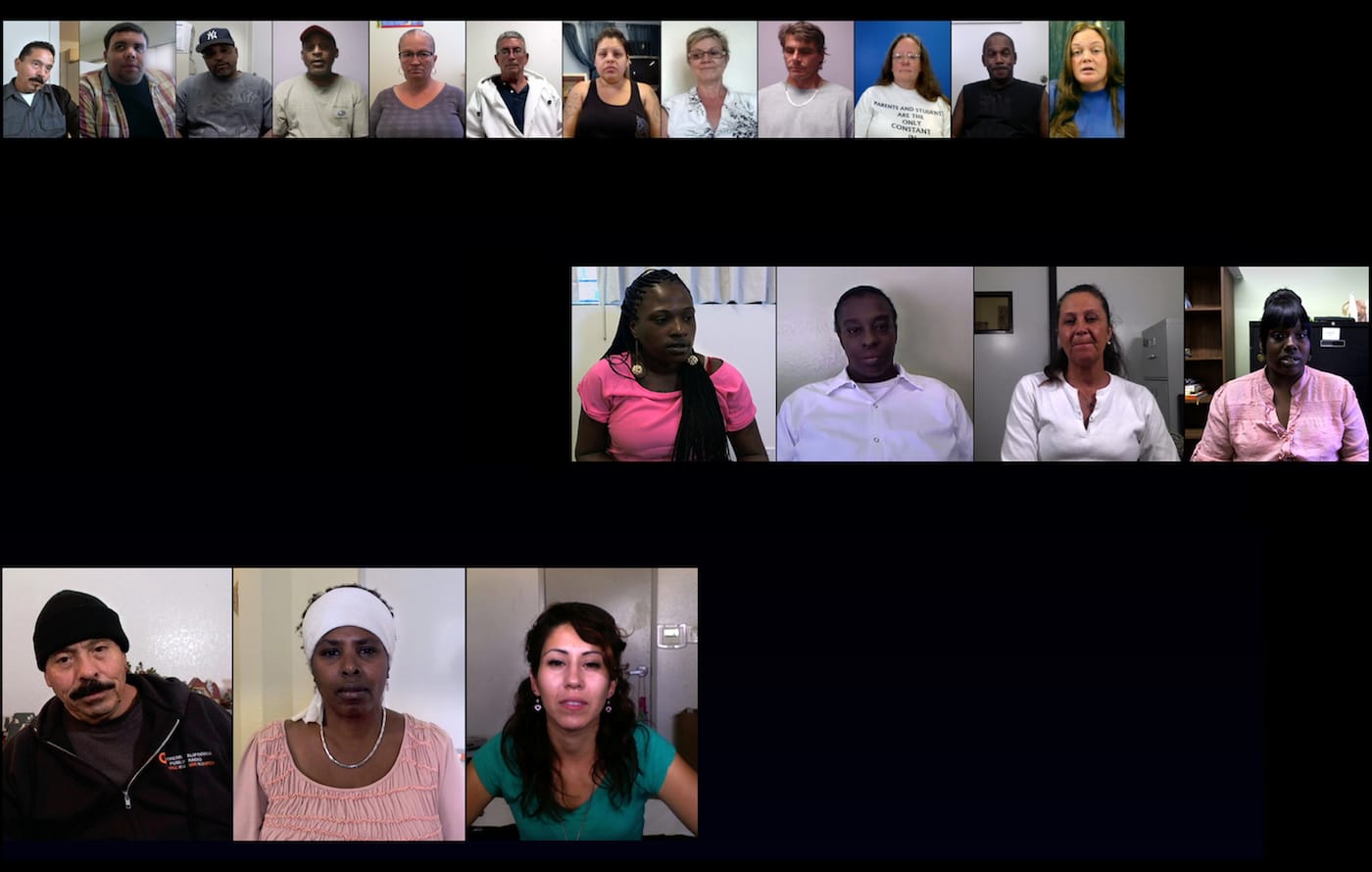 In 2012 and 2013, artist Natalie Bookchin spoke with over 100 people living in poverty in Los Angeles and the Bay Area. She visited homeless shelters, job training centers, adult literacy programs, and food banks. In the process, Bookchin compiled footage for her 45-minute video Long Story Short, which shows these men and women speaking before a camera about their personal experiences with poverty.