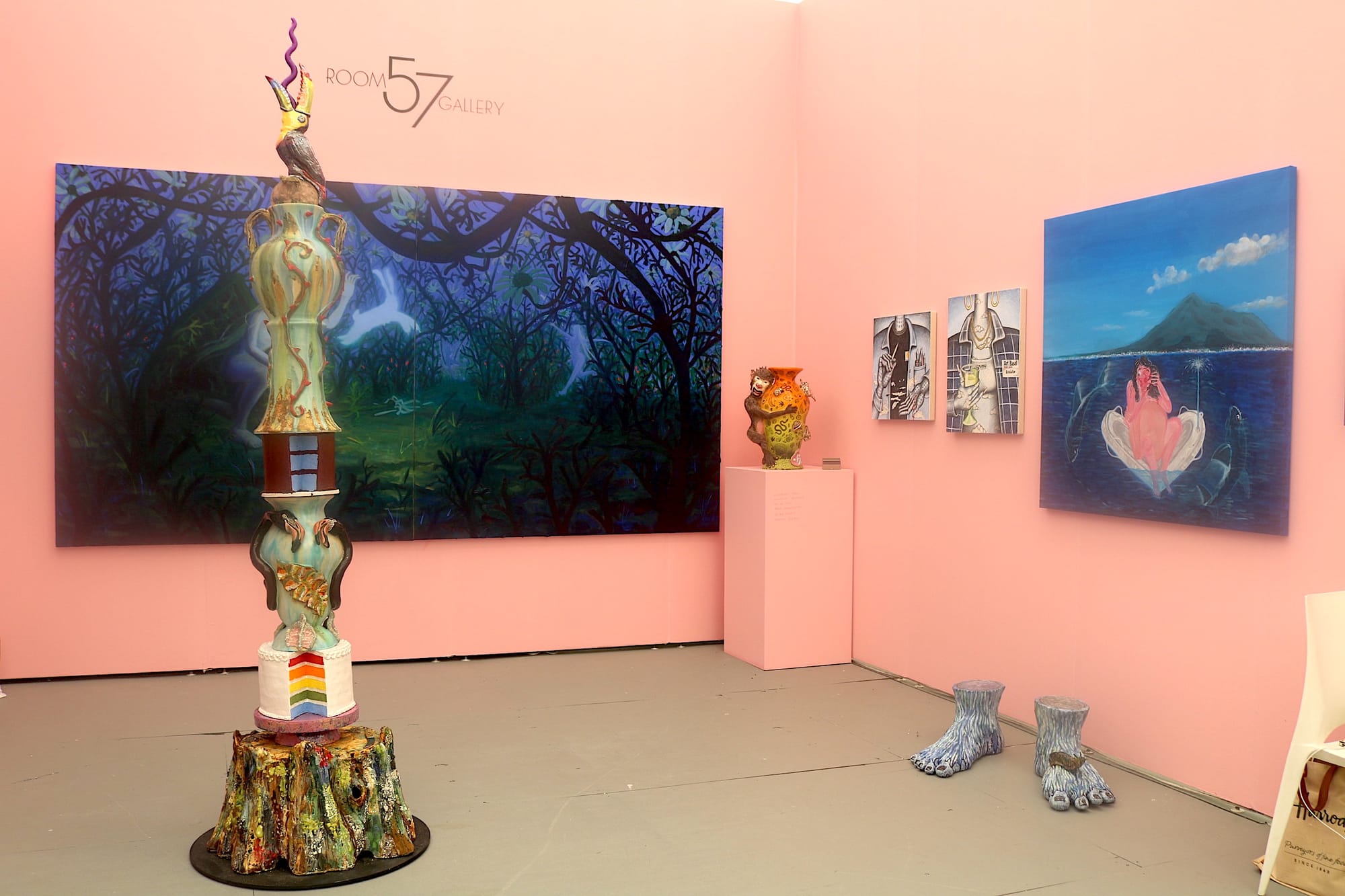 Throughout the three fairs, textiles, the environment, and the lure of ultra-femme softness pervaded. While the world is burning outside the ephemeral veneer of this week, artists are cultivating safe spaces to ponder intimacy, healing, and resilience in the face of oppression. See some highlights from these fairs below.