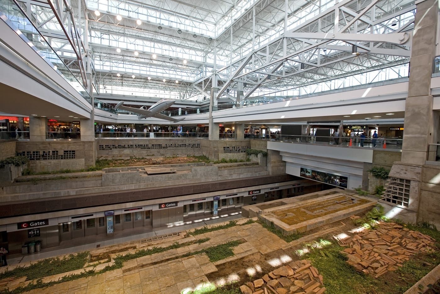 The airport’s art has been in the news recently because an installation by Michael Singer, “Interior Garden” (1995) — commissioned for the opening of the airport itself — was flagged by management as an expensive liability. This led to outcry against the proposed deaccessioning of the work, with the public weighing in on the piece’s value for the airport and the city. The collection is collectively valued at over $14 million, but the DIA communications department told the Denver Post that some $800,000 has gone into the maintenance of “Interior Garden” in the 22 years since the airport opened. DIA allocated a whopping $650,000 for the removal of the installation, which mimics ancient ruins alive with plant life and flowing water in the airport’s C concourse. According to airport officials who want to be rid of the needy artwork, the installation leaks, attracts pests, and “creates a hazardous situation for passengers.” The final call as to whether to destroy “Interior Garden” has fallen to Denver Arts and Venues director Kent Rice, who has yet to make a decision.