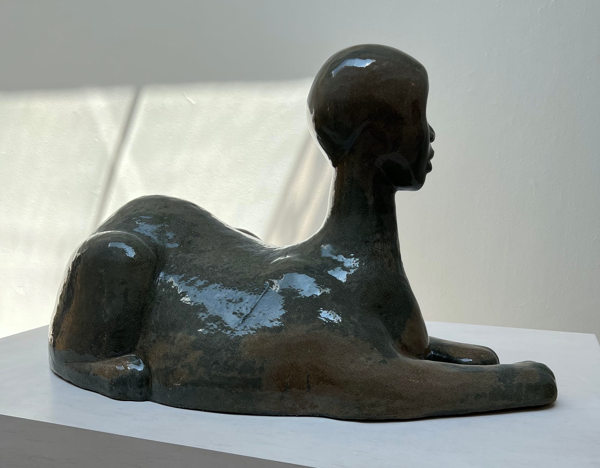 Leigh's large-scale works of bronze and ceramic, hearkening to Baga masks, Benin sculptures, West African figurative objects, and cowrie shells — as well Egyptian totemic sculpture and the modernist gestures of Alberto Giacometti and Max Ernst — collapse reference and original context into Leigh’s very own creations. They are an amalgamation of modes that are central to understanding the Black diaspora and global contemporary art. These works contain a cheeky conceit, but offer a sincere aesthetic, even if one chooses to read them only on their surface.