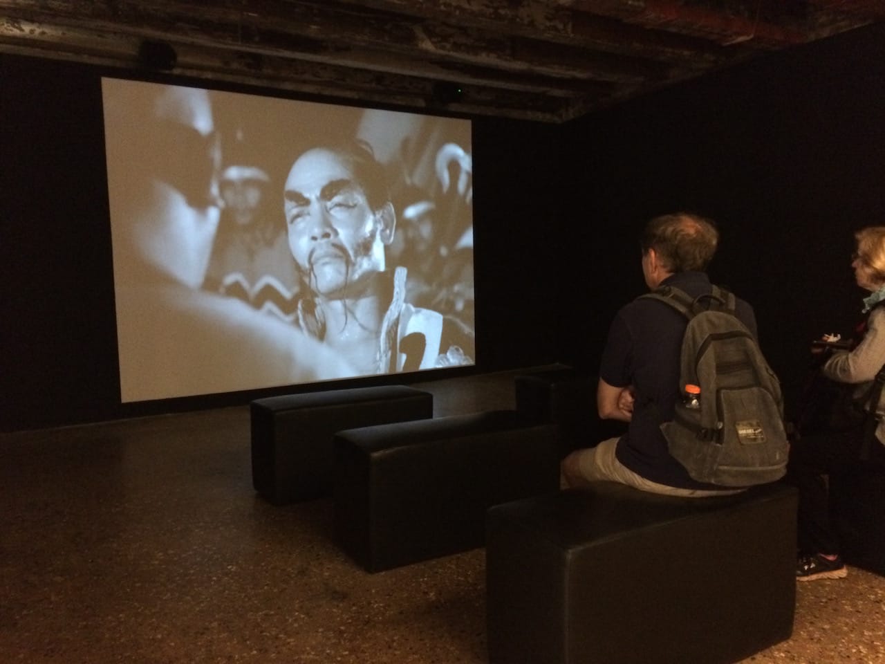 In contrast to the hyperreal, frenetic Manila that First World film buffs like Fredric Jameson have come to associate with Philippine cinema, Manuel Conde’s and Carlos Francisco’s Genghis Khan (1950) greets the viewer upon entering the exhibit, located inside the gorgeously decrepit European Cultural Centre. This quirky Tagalog film stars Conde in the titular role, with editing and English voiceovers redone by Pulitzer prize-winning novelist Jim Agee; the film made a brief splash at the 1951 Venice Film Festival and other major festivals with its story of Khan’s coming into power, but eventually faded into obscurity. Flores resurrects Genghis Khan to help claim Philippines’ art history as always having been in dialogue with the West; productively, the film also geographically and politically reorients the Philippines away from its last colonizer, the United States, instead directing it towards China as a major political rival.