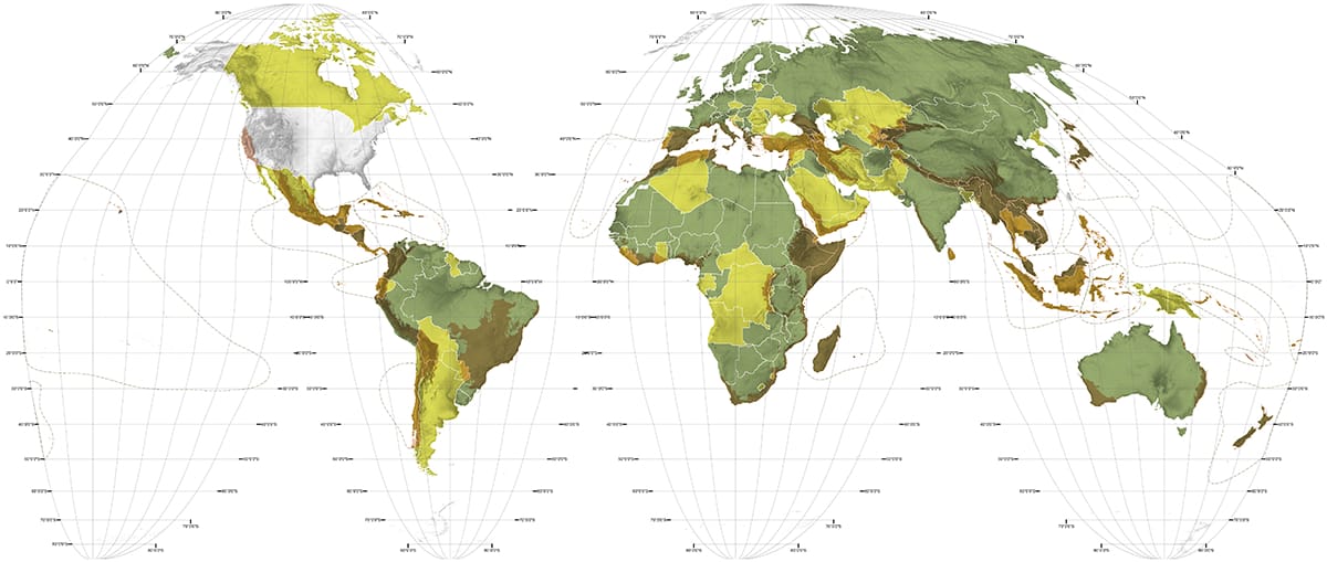 The subtitle of the Atlas is the “Atlas for the Beginning of the Anthropocene.” Weller used the Convention on Biological Diversity (CBD) and the United Nations Strategic Plan for Biodiversity 2011–2020 as a framework, in particular the CBD target of protecting 17% of the Earth’s land by 2020. In a 2016 post for the Penn Institute for Urban Research, Weller wrote that the mapping “can show any community or nation or NGO exactly how much land they need to protect and — at least in terms of ecoregionalism — where they need to protect it if they wish to meet their obligations under the Convention.”