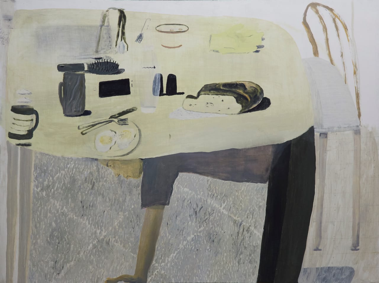 She uses a very different yellow in “Egg Breakfast” and “Weighty Table” (both 2020) because she is interested not in types, but in individuals. At the same time, within the domestic space she evokes, it seems she is trying to get at the elusive and unsettling without developing a narrative that can be easily extracted by the viewer; she is in pursuit of the ambiguous, uncanny, and withdrawn as integral features of everyday life.