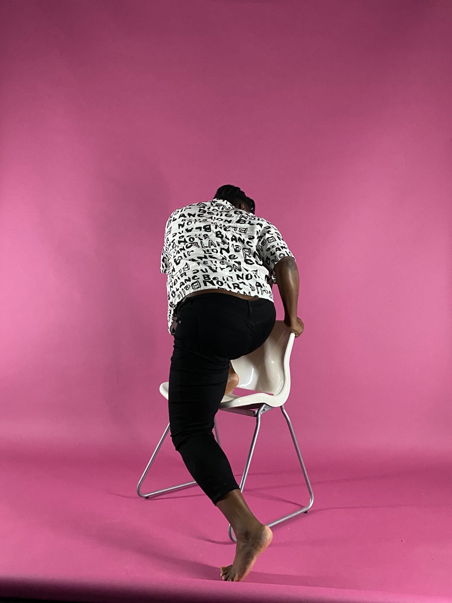 In the past, Knight’s work has taken diverse forms. From satirical musings on the dietary benefits of cockroach milk (the 2017 video “Roaches Aren’t the Easiest Creature to Milk”) to an improvised participatory talk show (the ongoing Sanity TV, of the aforementioned full-blown cackles), her work slyly critiques the raced, gendered, and classed nature of power, or rather the imbalance of it along such lines.