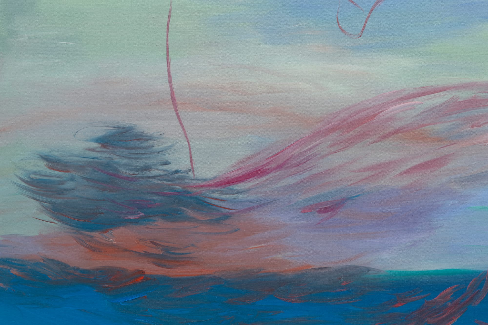 Avery Z. Nelson: My painting practice is rooted in playing with various ways to articulate sensation and perception. Grounded in movement, dance, and meditation, the experiences I paint are translated through encountering the world as a queer, nonbinary body. Specificity through perception, the malleability of materiality through the contingency of context and relationships, and translation are three core components of my practice. For example, in my most recent solo show, I don’t want to live in a world without feathers at Nogueras Blanchard Gallery in Barcelona, the exhibition centered on a trio of "Pitcher" paintings, each with a different play on the word.