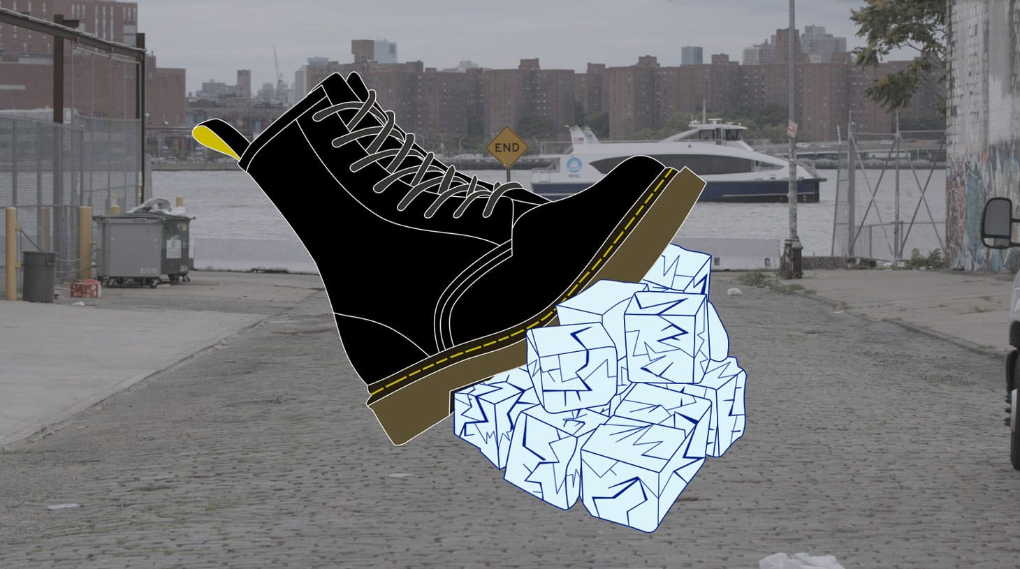 The image, an industrial boot smashing down on a pile of transparent blue enamel ice, drew inspiration from a popular anti-fascist stencil. Mohammed calls it a “protest image that is simple, well designed [and] thought out and gets the point across to anyone without much further explanation needed. By replacing the Nazi with I.C.E., I hope to have designed something that can address all of these points.”