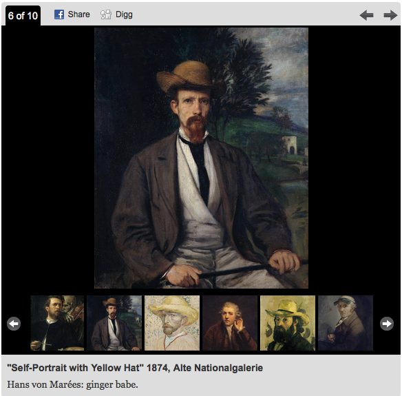 You know it was hilariously inevitable that someone was going to cruise the walls of Google Art Project checking out the hotties and collect them all into one place. Well, Chicago Now blogga Taleen Kelenderian did just that and she has labeled her favorites with such hipster-ific monikers as “Ginger Babe,” “Angsty Babe,” while Van Gogh gets the lamenting phrase, “unattainable babe.” Awww … I feel you, Taleen.