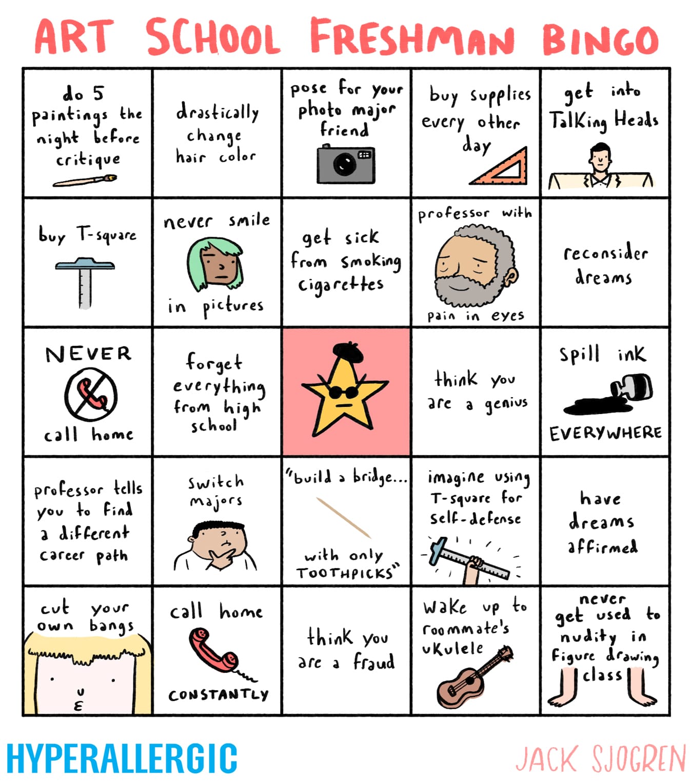 Back-to-School Bingo for Freshman Art Students